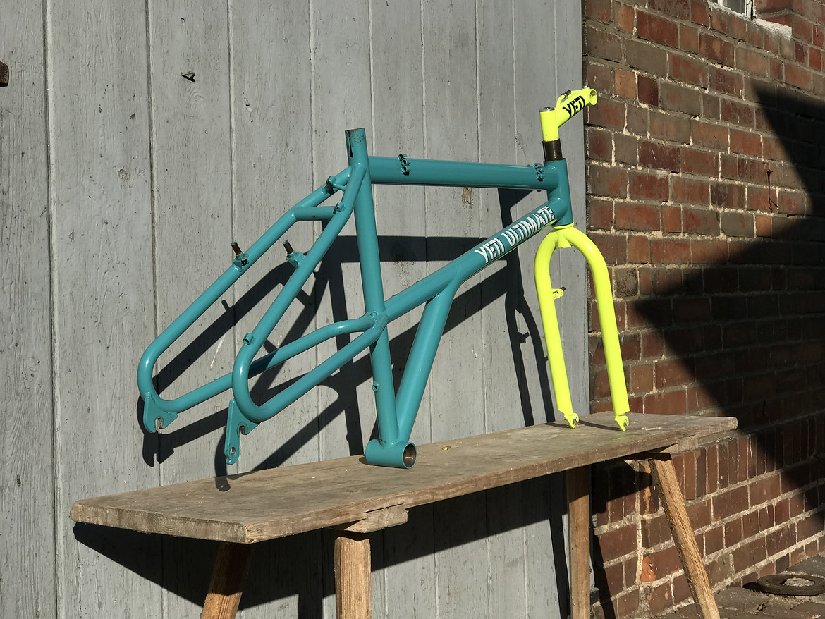 Ehrlich gesagt, an mir ging es lange vorbei - bis an dem Tag als ich einen Aufbau sah der meiner Meinung nach nicht raciger Anmutend hätte sein können. Ich zeige da mal bewusst kein Foto ;) Geplant ist kein Nachbau sondern wie bekannt meine eigene Varianz reinzubringen. So viel sei gesagt, die Farbkombination des Rahmensets war der Ausschlaggeber für dieses Projekt. Diese Farben stehen einfach für Yeti Cycles und sein damaliges Racing-Team.