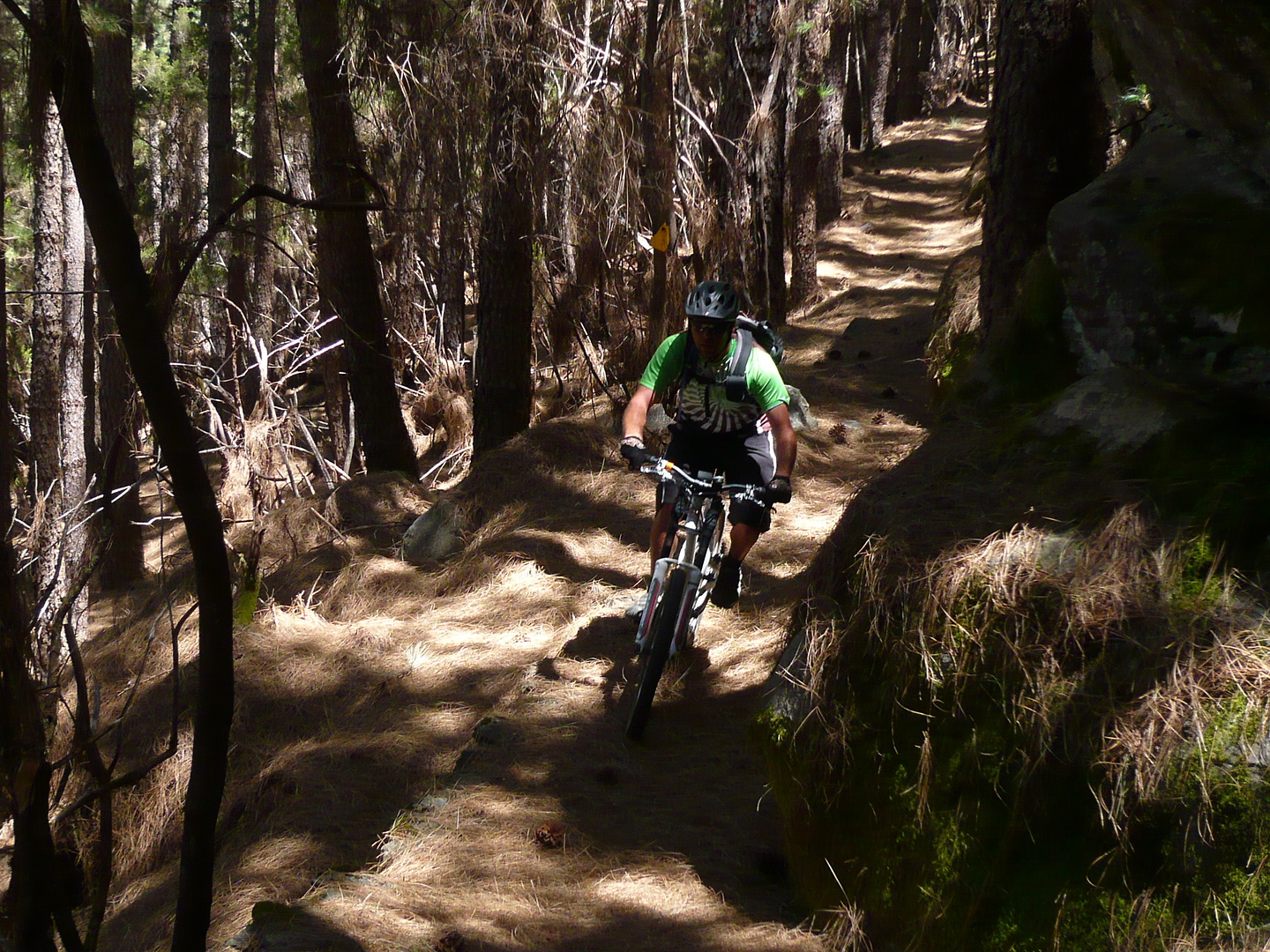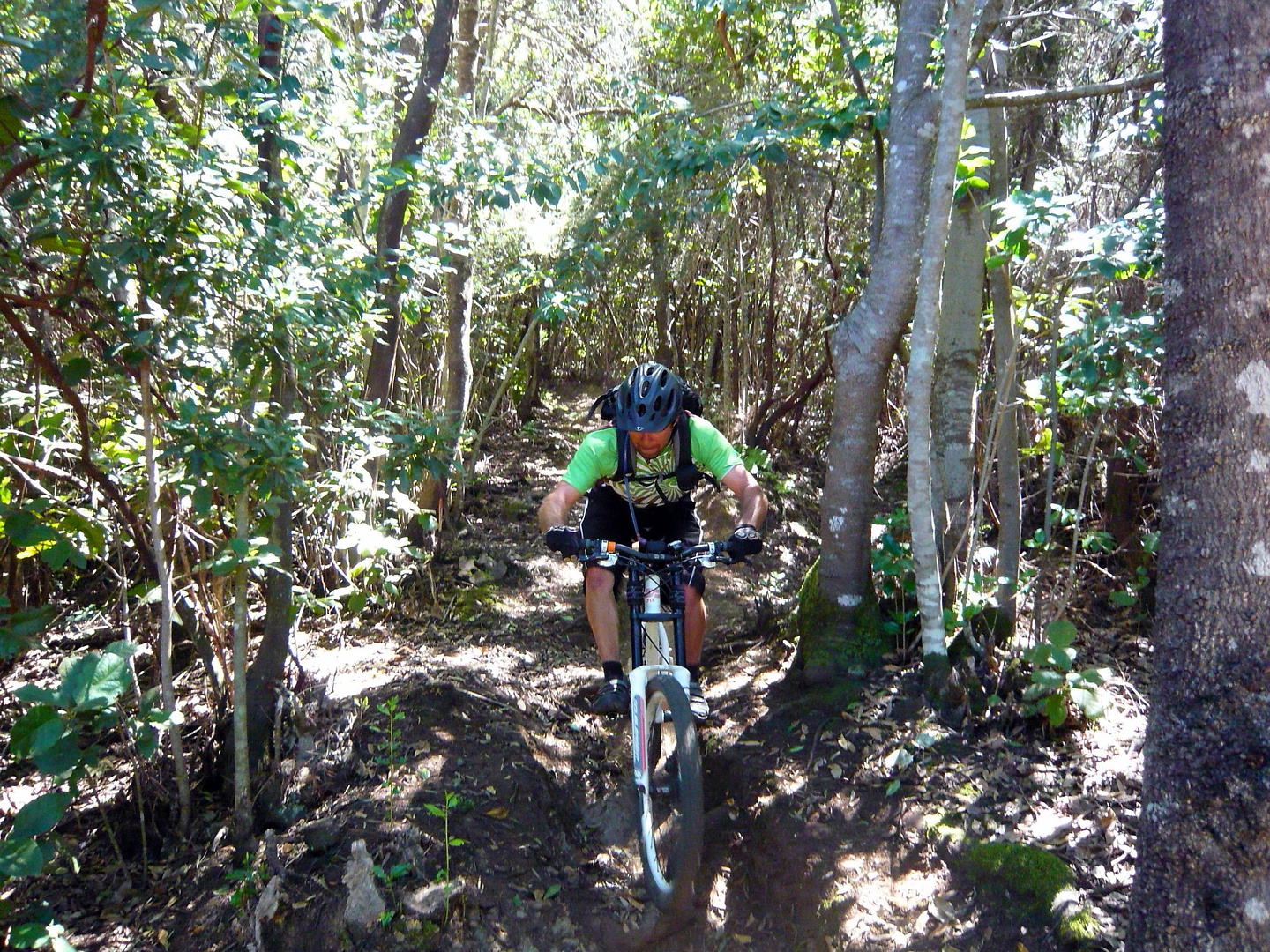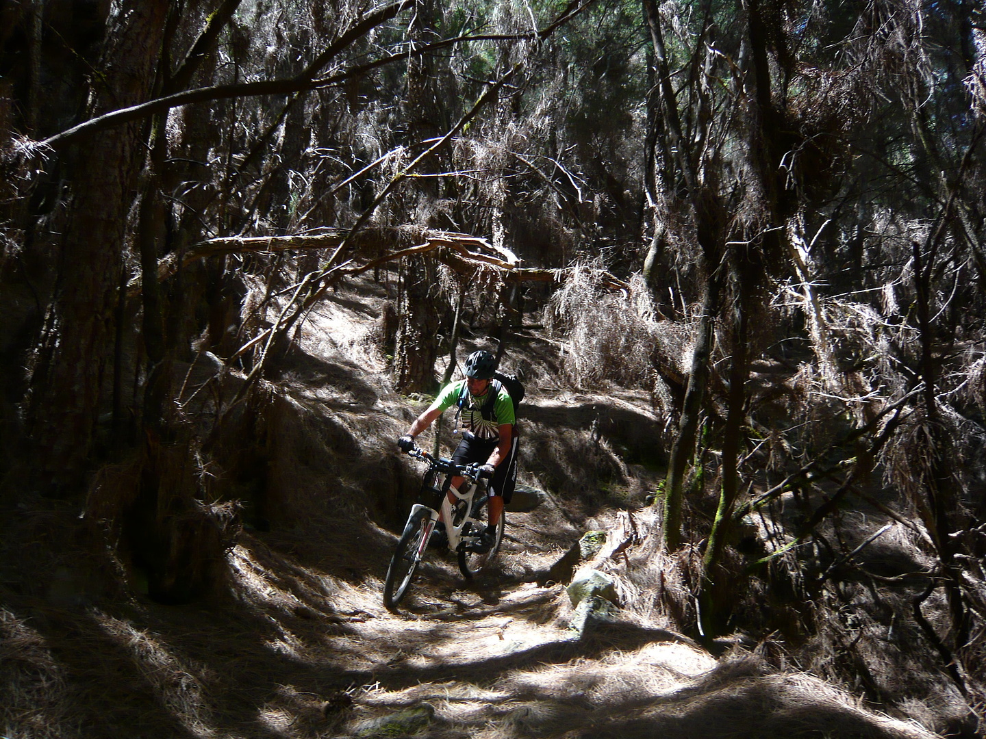 dann folgt ein nicht enden wollender s2-flow-trailtraum. ein paar kurze technische stückchen, aber meistens schwebt man über weichen waldboden durch dichten, grünen lorbeerwald bergab. wusste gar nicht, dass es sowas auf teneriffa gibt. genial!