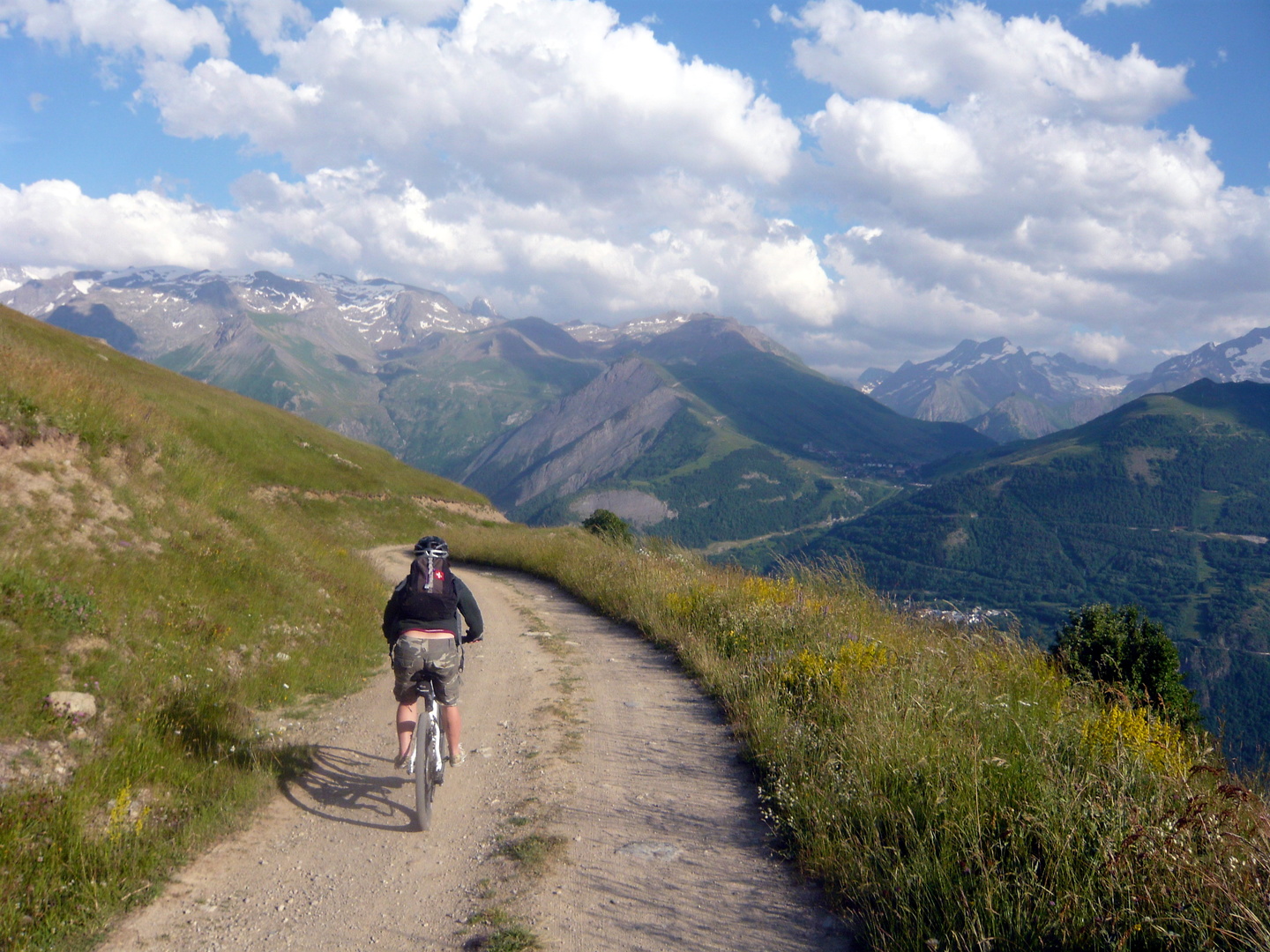 In Alpe d'Huez ist der Bär los, auf den Straßen haufenweise Freerider in Vollpanzerung. Das Megavalanche-Event scheint noch voll im Gang. Für Freeride-Aktionen mit den Gondelbahnen ists heute für uns allerdings zu spät, also machen wir uns nach langer Pause an die Abfahrt. Macht nix, ich komm in zwei Tagen wieder her und werde dann sämtliche Trails unter die Stollen nehmen.