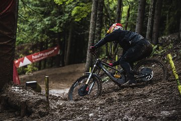 Für alle Fans von Downhillern in schwarzen Regenjacken: Hier gibt es die besten Fotos vom feucht-fröhlichen World Cup-Training in Les Gets.
