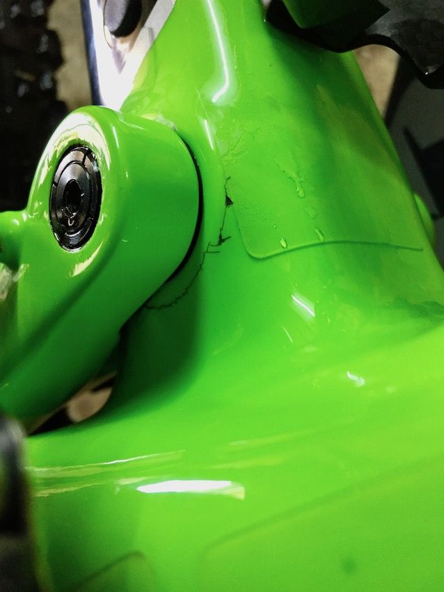 Da ich folgendes Schadensbild an meinem Scalpel Team 2017 hatte wurde der Rahmen anstandslos gegen den 19er Worldcup getauscht.