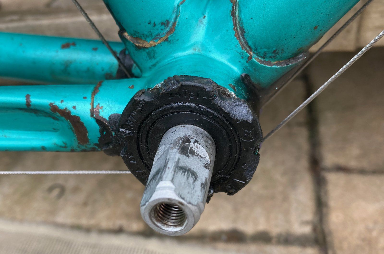 Mein Maruishi-Projekt ist wieder "On track": nach etwas Arbeit mit das wunderbare BB aus Kunststoff kommt es alles zusammen. Heute habe ich die Bremsen eingestellt und ist danach im Singlespeed-Modus eine Runde gefahren, mit 470mm Kettenstrebe sehr stabil. Es wird 2x10, die Dura-Ace barend Shifters liegt am Tisch und wird in die nächsten Tage verbaut, warte noch auf ein kürzere BB und ein paar Gravelking SK, irgendwann soll auch Dia-Compe Hebeln und ein Nitto Lenker das ganze zu ein Version 1.0 bringen.