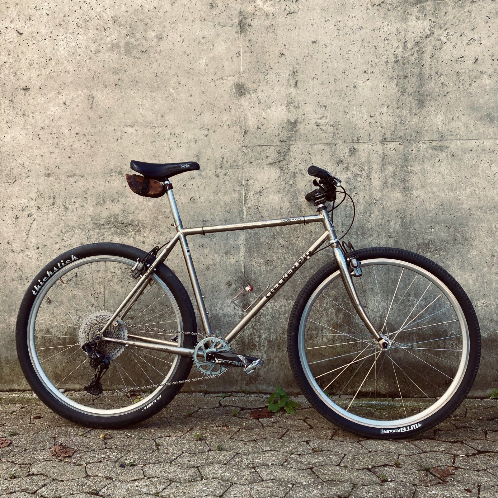 Meine Idee ist wie folgt: einen MTB-Stahl-Rahmen als Grundlage, mit Canti-Sockeln. Hinten auf 135mm aufweiten und dann eine Alfine11 mit Hebbi Chainglider rein. Dann wäre der Antrieb geschützt und ich bräuchte nicht mehr so viel Zeit mit der Kettenpflege verbringen. Das Wasser, was wir hier in Berlin im Herbst/Winter auf der Straße haben, ist voll mit Feinstaub, Sand, Salz und was da noch alles drinnen ist. Daher der Ansatz.