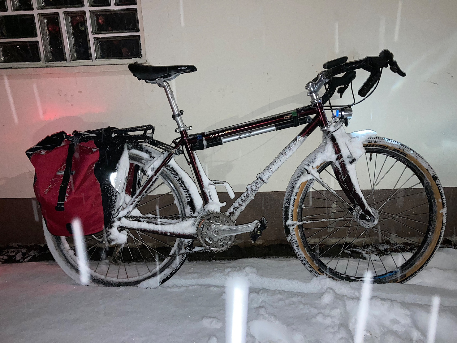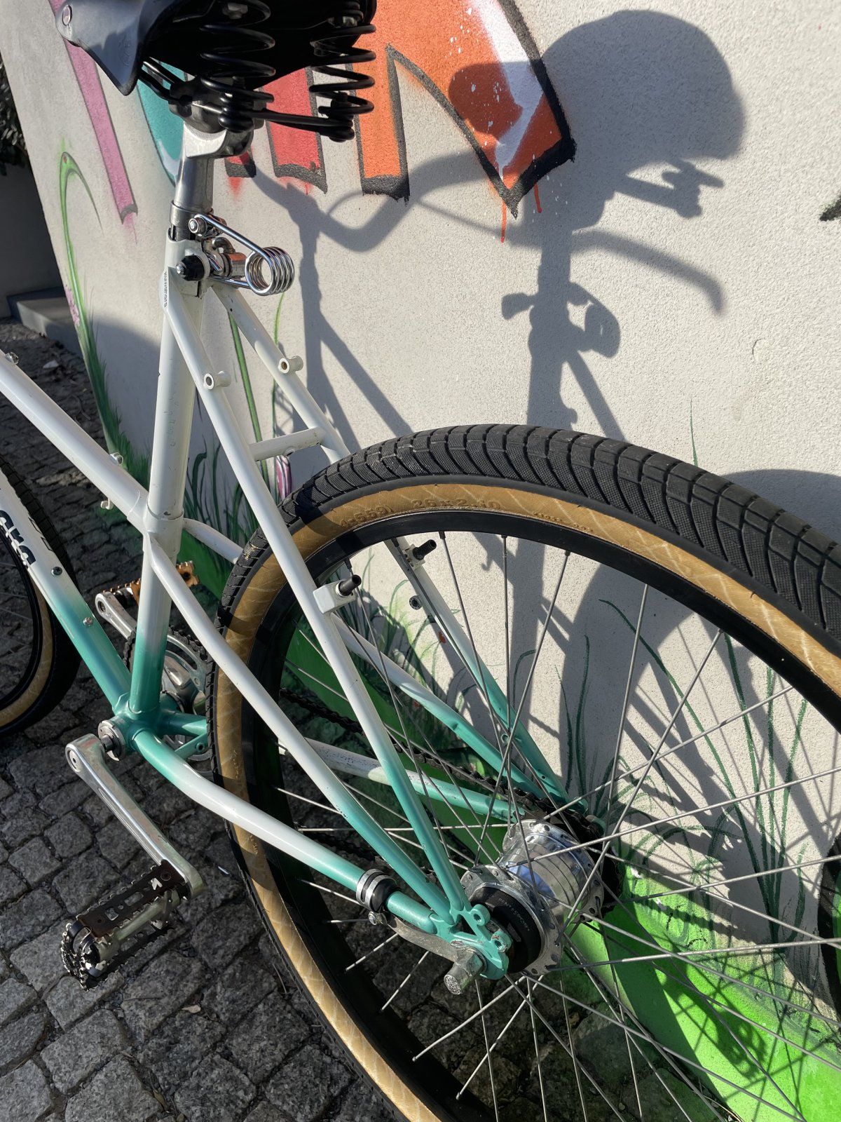 Die Oberrohrtasche muss ich an dem Bike nur ganz ordentlich befestigen weil nicht viel Platz für die Riemen ist.