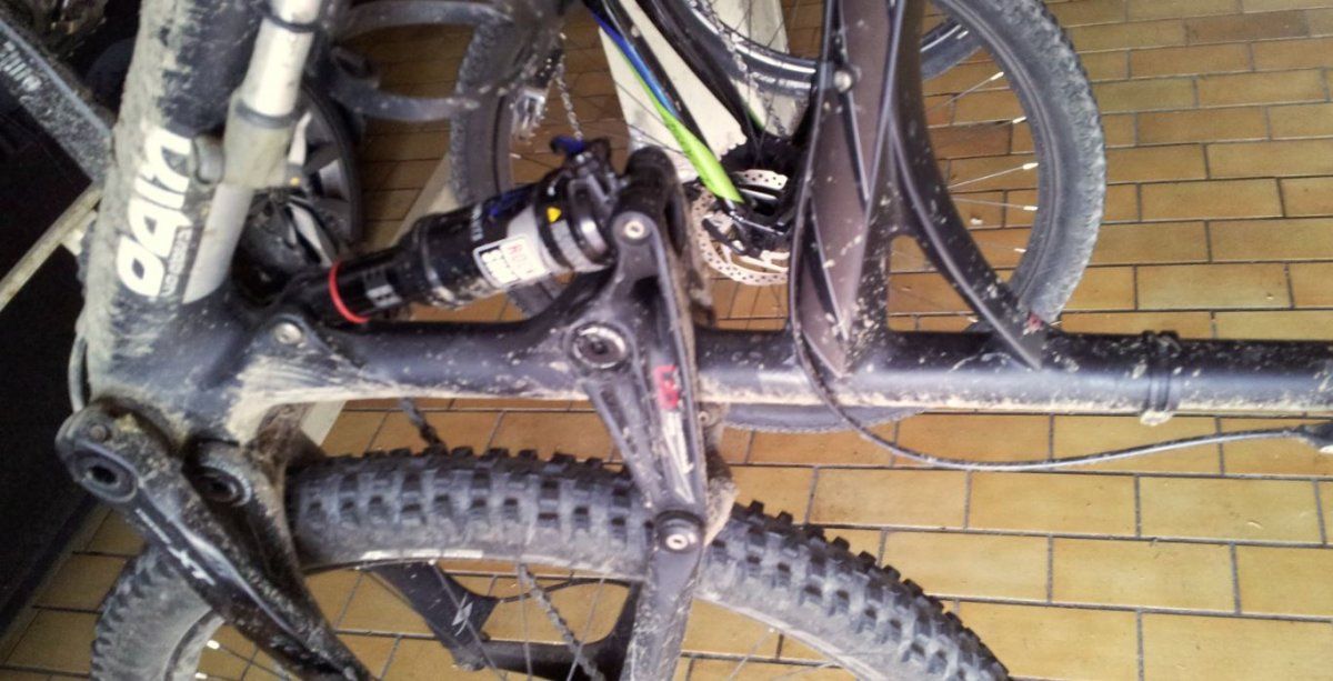 Warum sollte man das den ganzen Tag tun? Einmal reicht. Und dann schön auf dem weiterrutschenden Rad zwischen Sattelrohr und