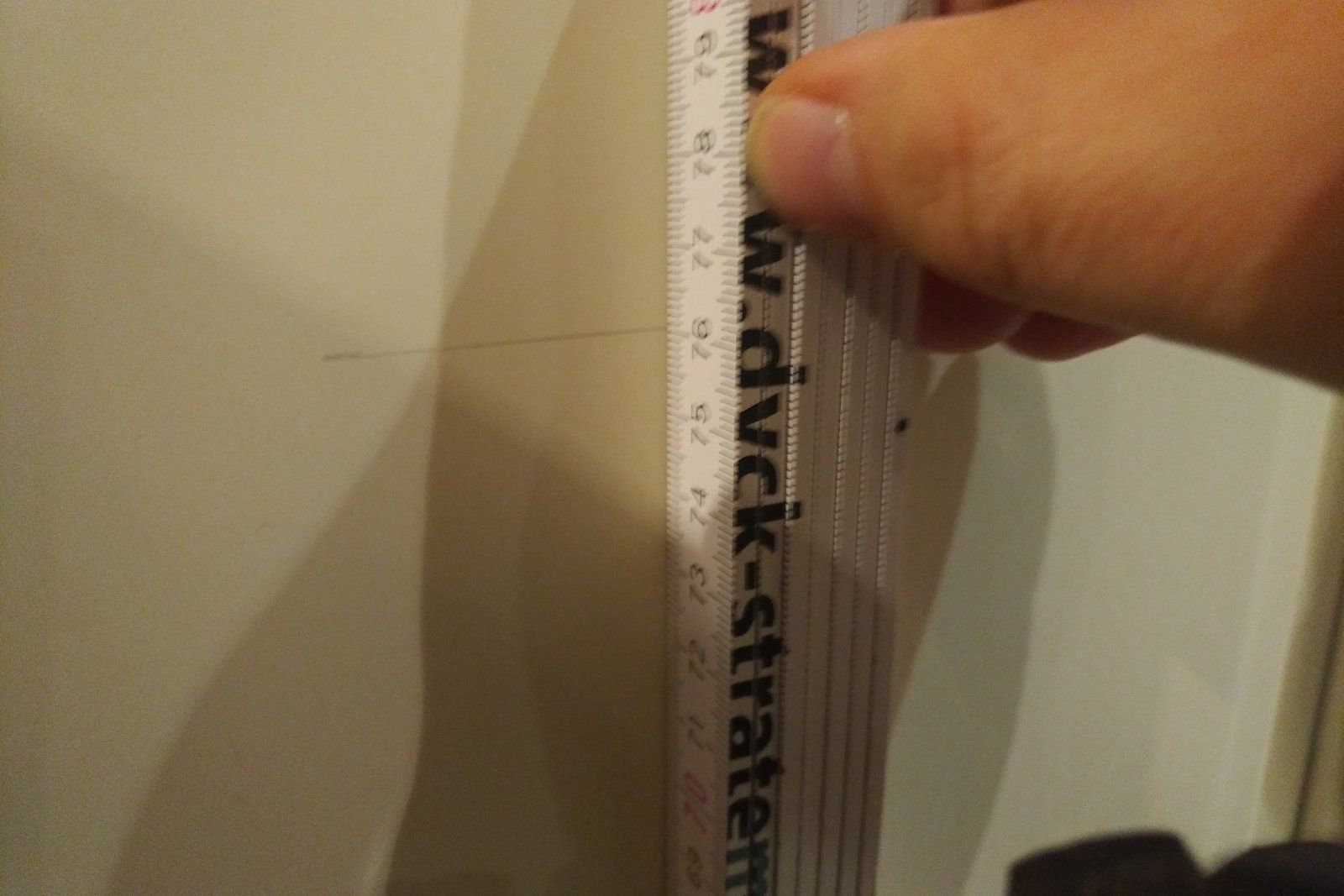 Meine höchst unprofessionelle Experten-Messmethode förderte eine Gesamthöhe von exakt 760 mm zu Tage - und einen Strich an meinem Türrahmen: