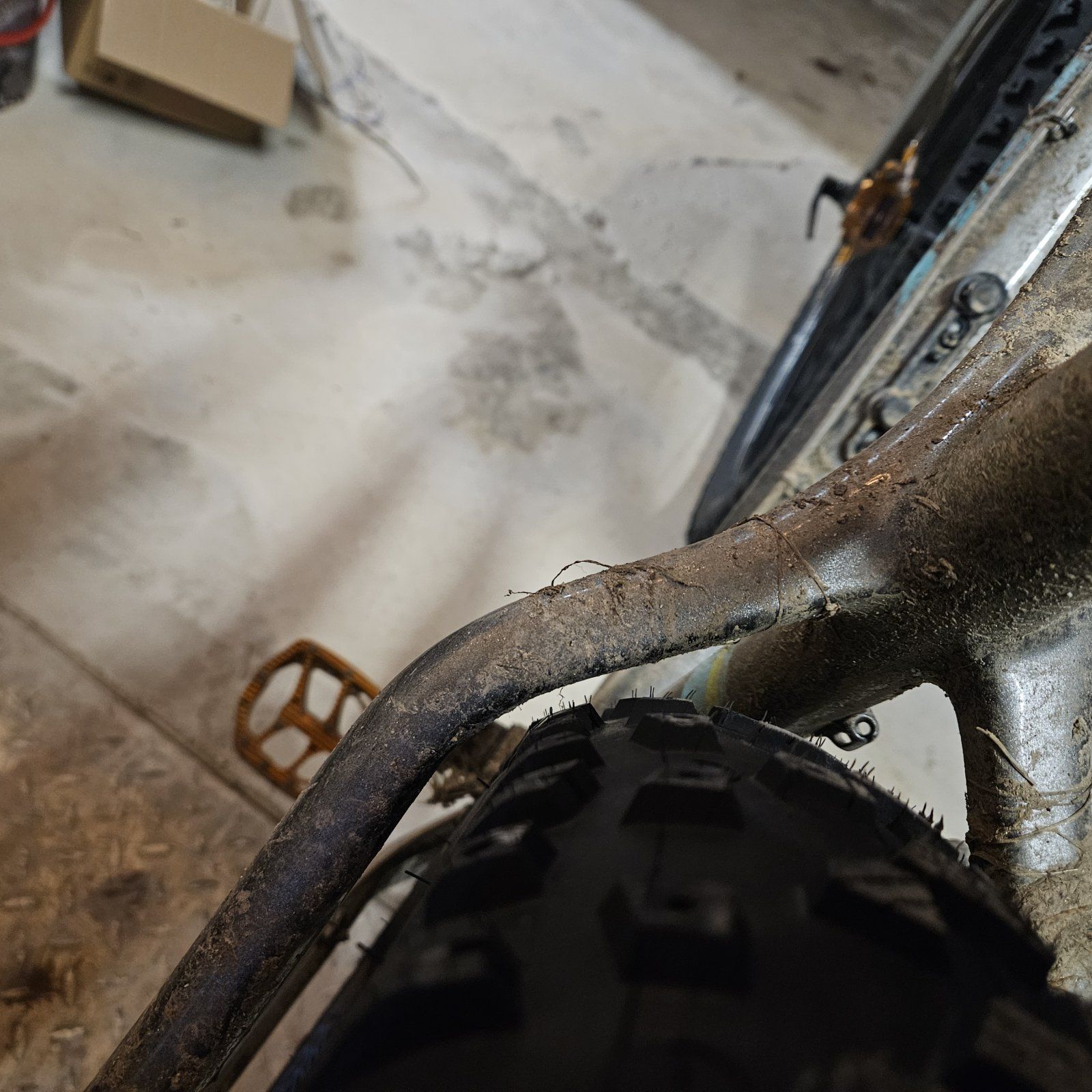 Bissel Schlamm am Reifen und dann schmirgelt der dir die Sitzstrebe schmaler 🫣🫣
