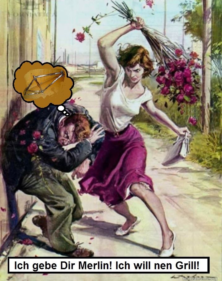 Da ist das Problem, noch netter als sonst kann ich gar nicht sein. Und meine Frau hasst Blumensträuße, sie guckt sich die Blumen lieber lebend in der Natur anKeule! Grill auf KA preiswert kaufen, Frau Blumenstrauß schenken, vielleicht etwas netter als sonst sein, und Merlin weitermachen! Kann das denn echt wegen eines Grills sein, dass es da nicht weiter geht?? Ultima Ratio: Hobby kompatible Frau anschaffen!