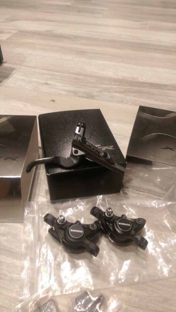 Da es natürlich jede Menge E-Biker gibt, die sich ihre Bremsbeläge selbst wechseln können, bin ich an 4 XT Bremssättel mit zerschroteten Kolben gekommen. Aus 4 kaputten, werden 2 Ganze, welche ich nun testweise mit den neuen XTR Hebeln ausm Bikemarkt zusammenbauen werde. Bin gespannt, wie gut das geht.