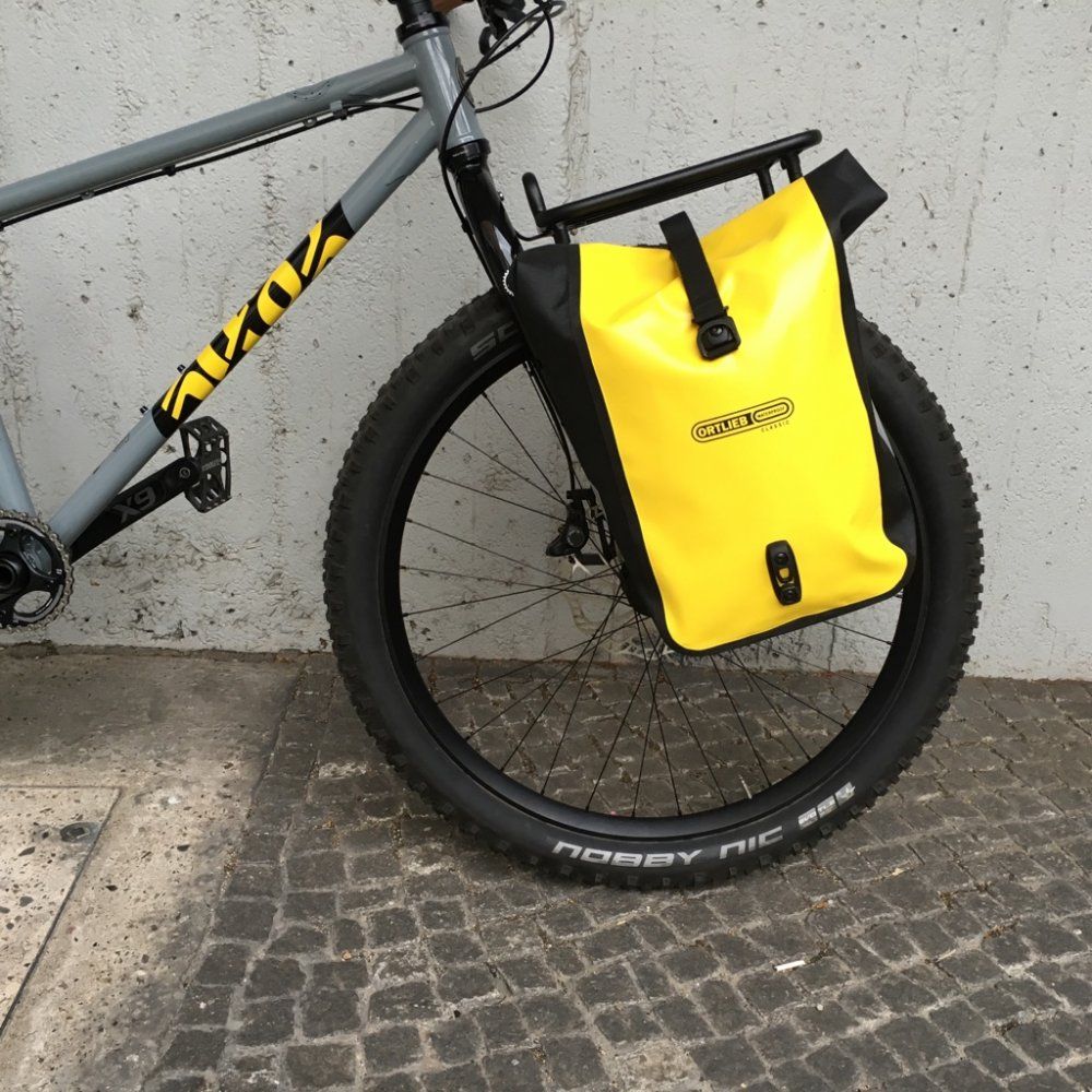 Die aus 5mm Acryl gelaserten Halter halten immer noch ganz gut, also auch mit schwerer Packtasche den Bordstein rauf und runter.