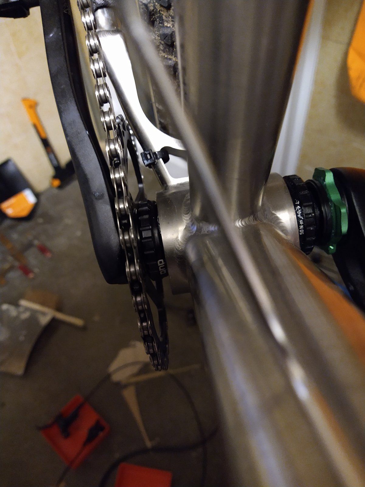 Braucht dub auf BSA68 nicht 3 Spacer? Einer pro Seite unter die Lagerschalen und einer links zwischen Lager und Lagerspieleinstellding?So wurde die Kettenlinie passen. Leider ist da auf der Nichtantriebsseite zuviel Achse übrig. Soviel Offset bekomme ich nie....