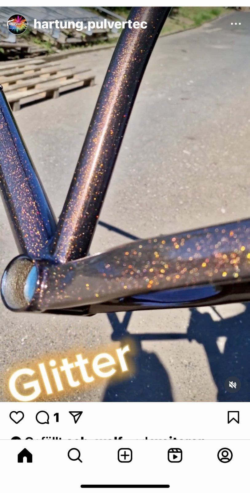 Der Rahmen wurde schwarz glänzend gepulvert. Danach kam Glitter Braun Klarlack Pulver rauf.Gibt es mittlerweile Pulver mit so großen Flakes oder ist das Lackiert?