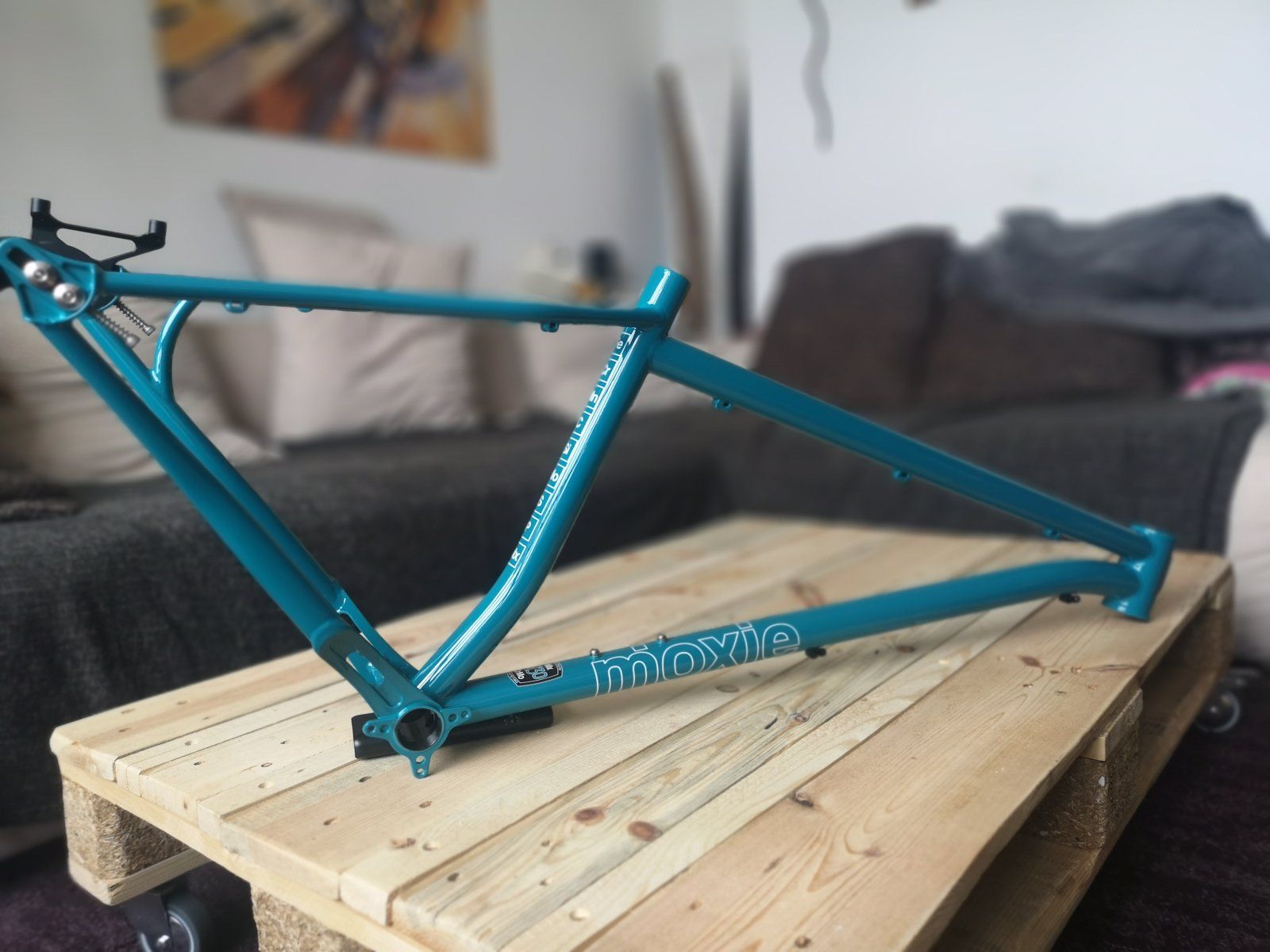 einfach schön. ordentlich verarbeitet, sauber. die farbe ist "wild teal", genau an der grenze zwischen blau und grün. schwer zu fotografieren. alle bilder im netz lügen. die decals sind (leider) unter lack die zugführung ist etwas inkosequent. bremse und schaltung unterm oberrohr, für mit kabelbinder. ne dritte leitung würde auch noch hingehen. eigentlich wäre ne moveloc mit der ansteuerung an der sattelklemme perfekt. die zughalter am unterrohr für die stütze sind dann geschraubt, an den sitzstreben schließlich für c-clips aber jammern auf hohem niveau. 2924g inkl. achse.