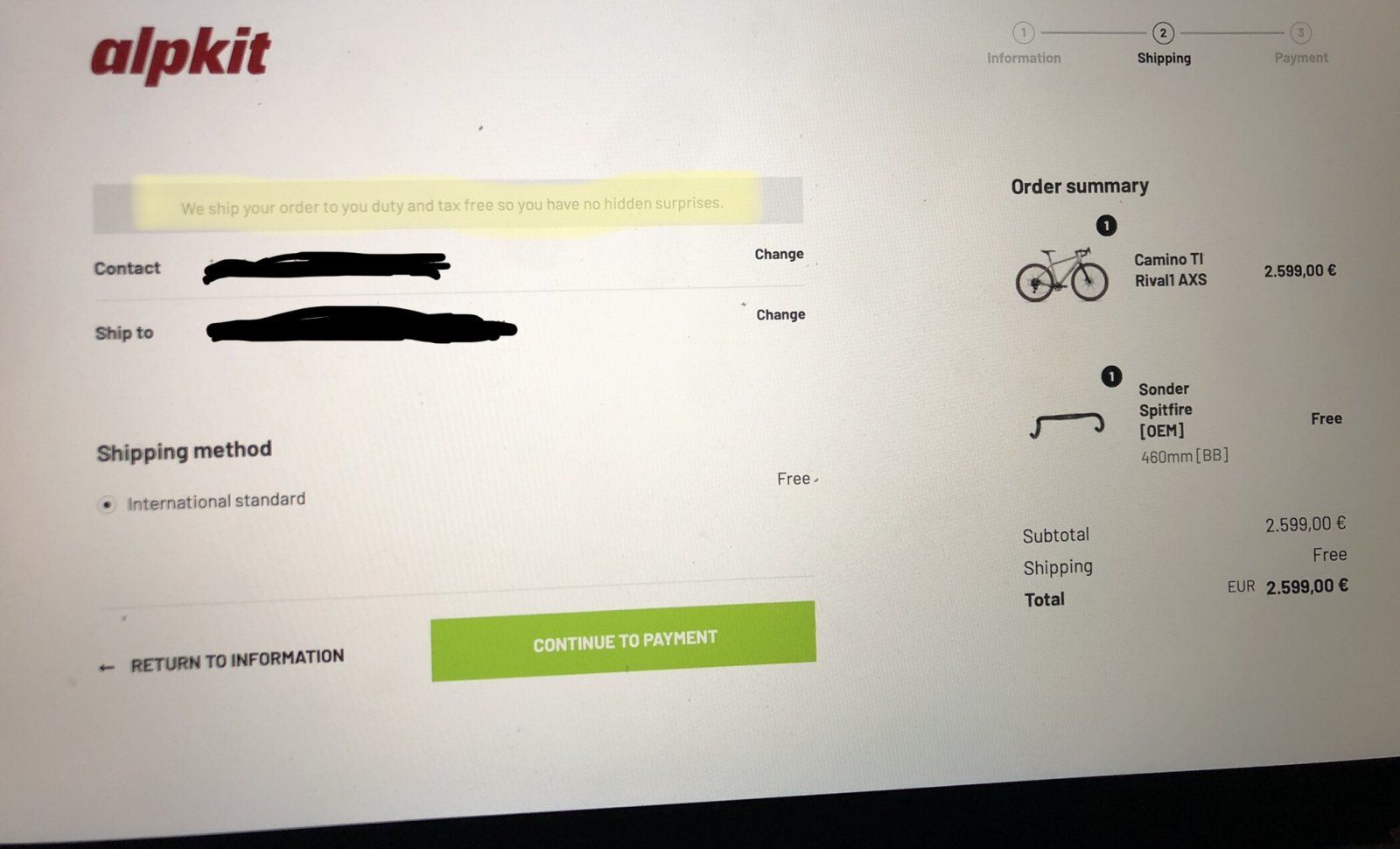 Das ist der Endpreis. Die liefern das Rad anscheinend direkt aus China in die EU.Geil! Und guter Preis (vor Steuern).