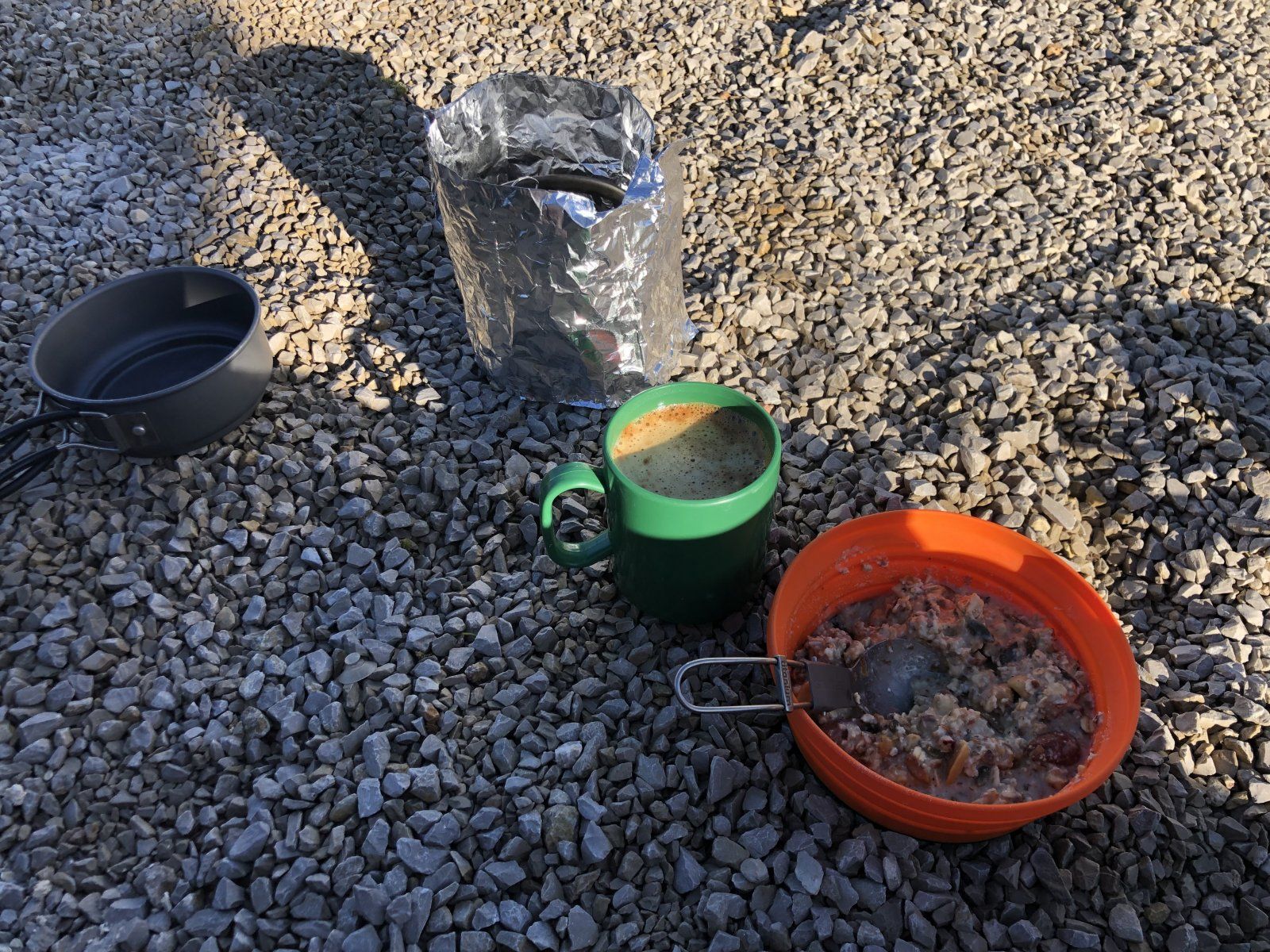 Pünktlich um 7 klingeln beide Wecker. Sicher ist sicher. Gestern Abend habe ich noch versucht, den Proviant unterzubringen. Es war ein Krampf, aber irgendwie habe ich dann doch alles in die Taschen quetschen können.