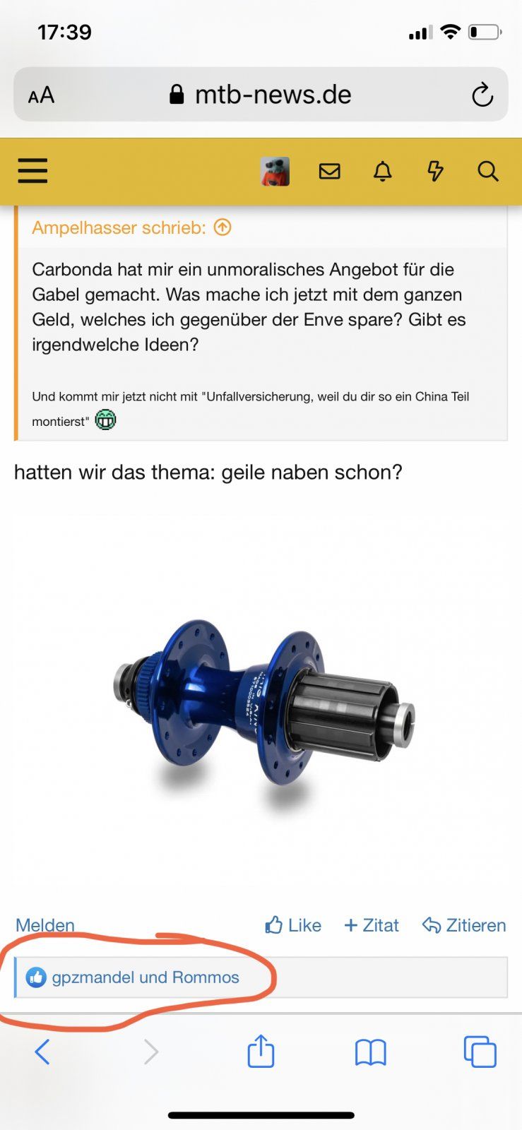 , aber die Konstruktion find ich überzeugend. Gut, sind etwas schwer, mir aber ist so was eh egal. Und auch teuer. Einziger Wermutstropfen ist, dass man das Lagerspiel einstellen muss / kann. Dafür scheint die Wartung ohne Auspressen und Einpressen, sprich Spezialwerkzeug, zu gehen.