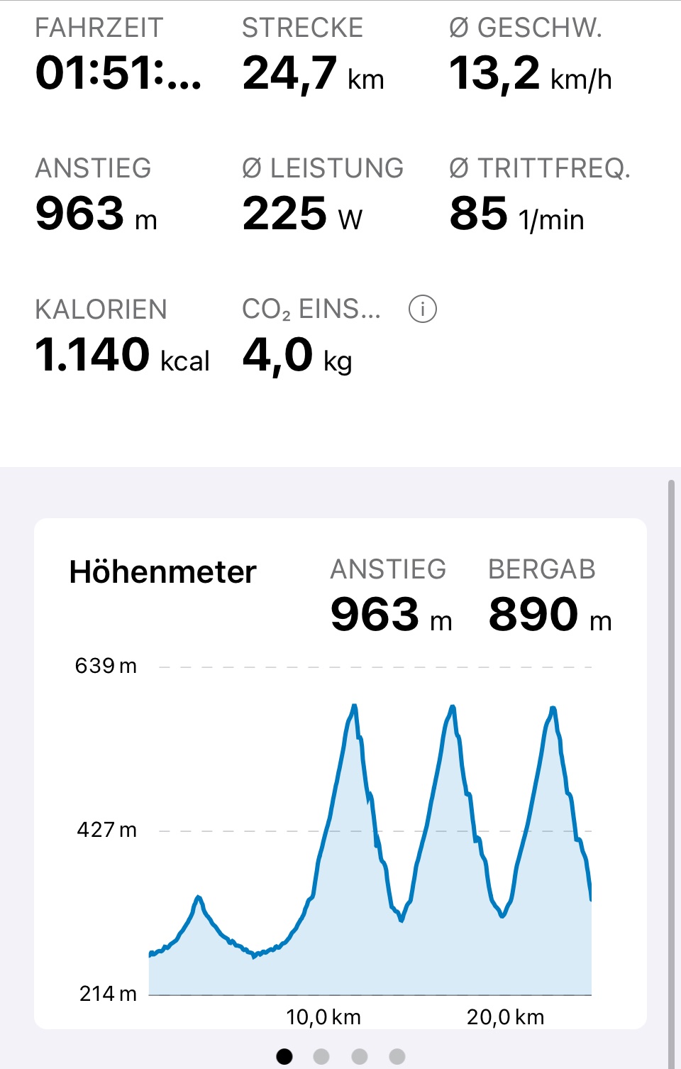 Ich bin die gesamte Zeit in Tour+ (eine über Eco) gefahren. Die Bodenverhältnisse waren wahnsinnig schlecht. Der Schnee war durch den Regen matschig und man hat sofort aufgehört zu rollen, wenn man nicht mehr pedaliert hat. Heute im Turbo wäre ich nicht annähernd so weit gekommen wie gestern.