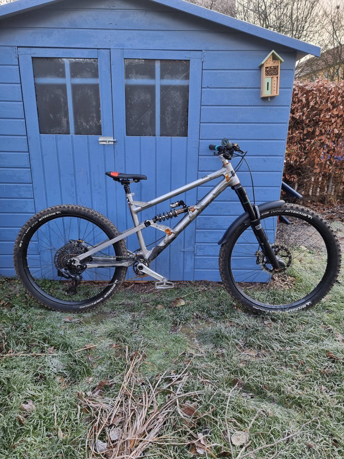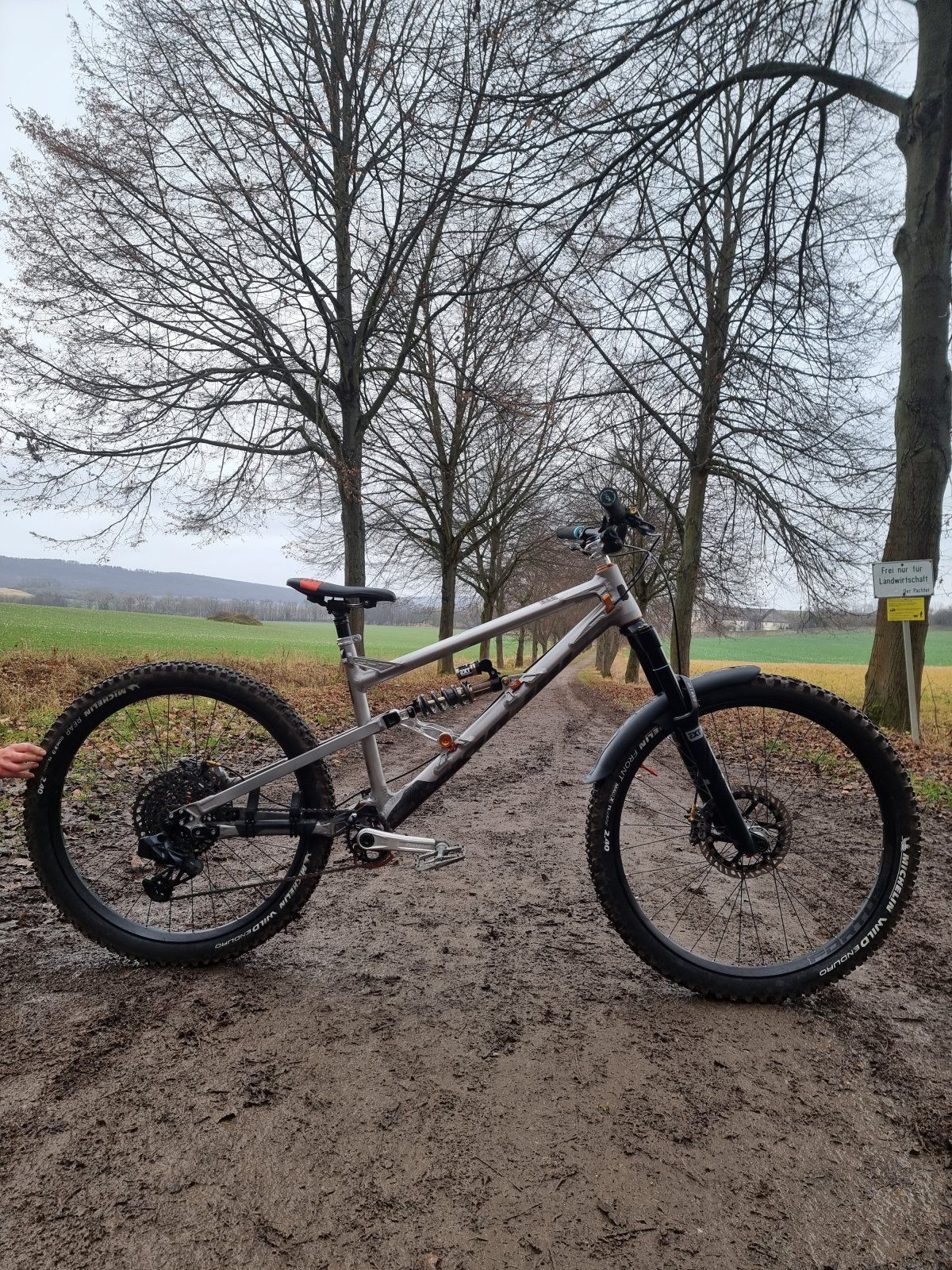Nur die Gabel+Laufrad, veränderte Geo sieht dann so aus:Glaubst doch selber nichtAusrede wird sein: na ja wenn Bremse nicht kommt muss ich was anderes machen