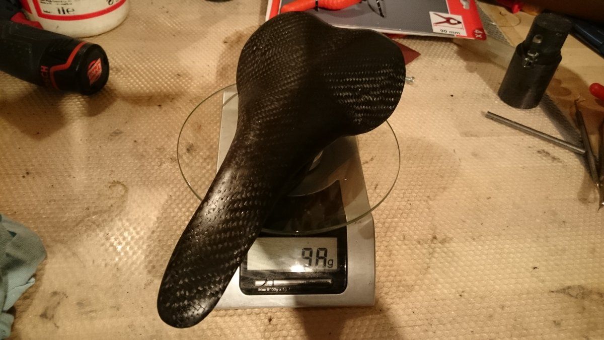 mein erster Eigenbausattel ist fertig geworden. ohne große Vorkenntnisse im Carbonbau und als Erstlingswerk ist´s ganz OK geworden, aber das Finish und Gewicht sind ...naja....unter aller Sau :D