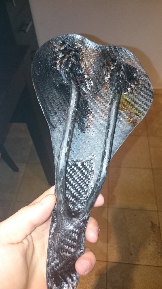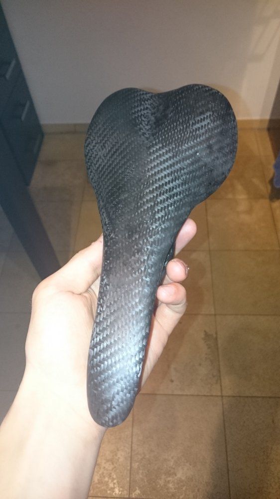 ich werd ihn noch mit Leder beziehen - rein aus "Sicherheitsgründen" um nicht direkt Carbonspreissl im Hintern zu haben und ihn die nächste Zeit aufm Crosser testen, ob er überhaupt hält.