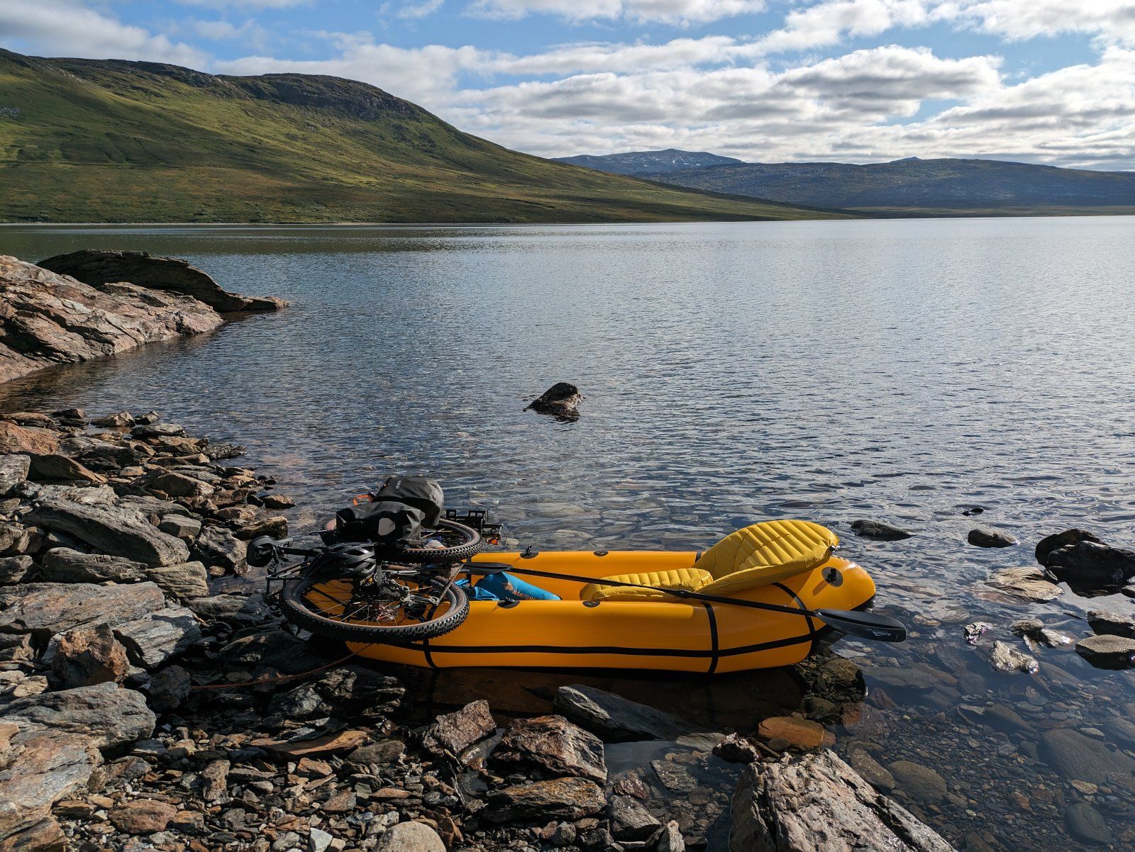 In Schweden hatte ich bei der letzten Einkaufsmöglichkeit für ca. 1 Woche Proviant eingepackt. Bin davon ausgegangen, dass ich schon ein paar Tage am See ausharren muss bis sich ein gutes Wetterfenster ergibt. Aber ich hatte wahnsinniges Glück und bin beim besten Wetter über den See. Das war übrigens exakt an dem Tag als im Süden von Norwegen dieses Unwetter "Hans" runter ist, das ganze Brücken weggerissen hat. Im Norden war da schönstes Wetter.