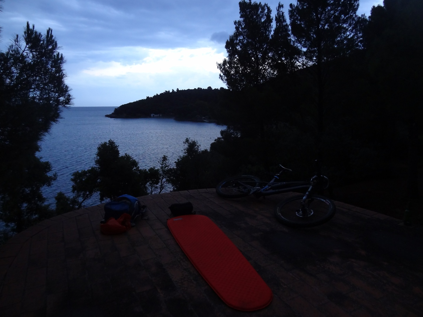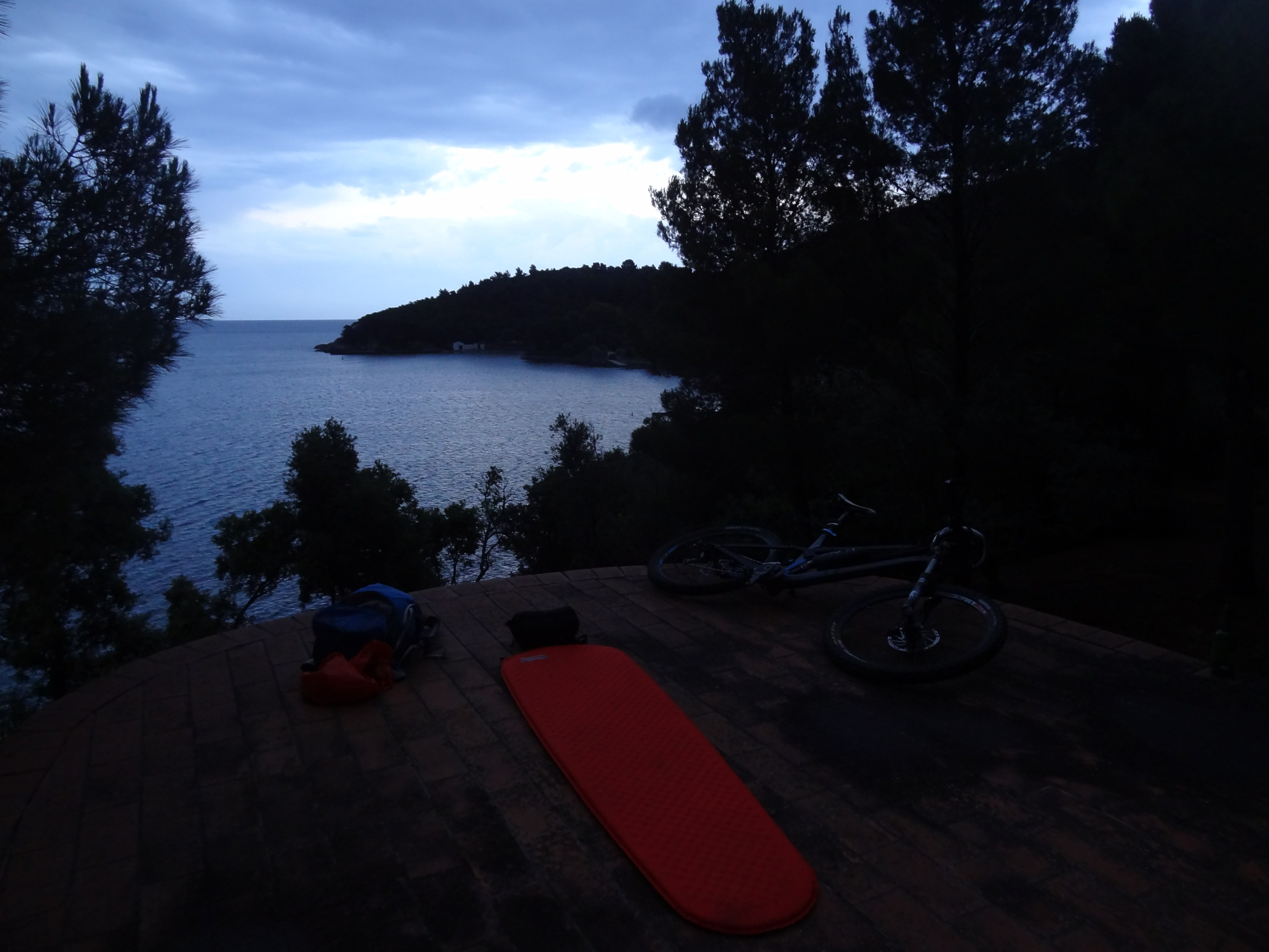 Schlafplatz gestern Abend oberhalb des Spiagga de Galenzana: perfekter Blick über die Bucht und genau der richtige Abstand für leises Wellenrauschen.