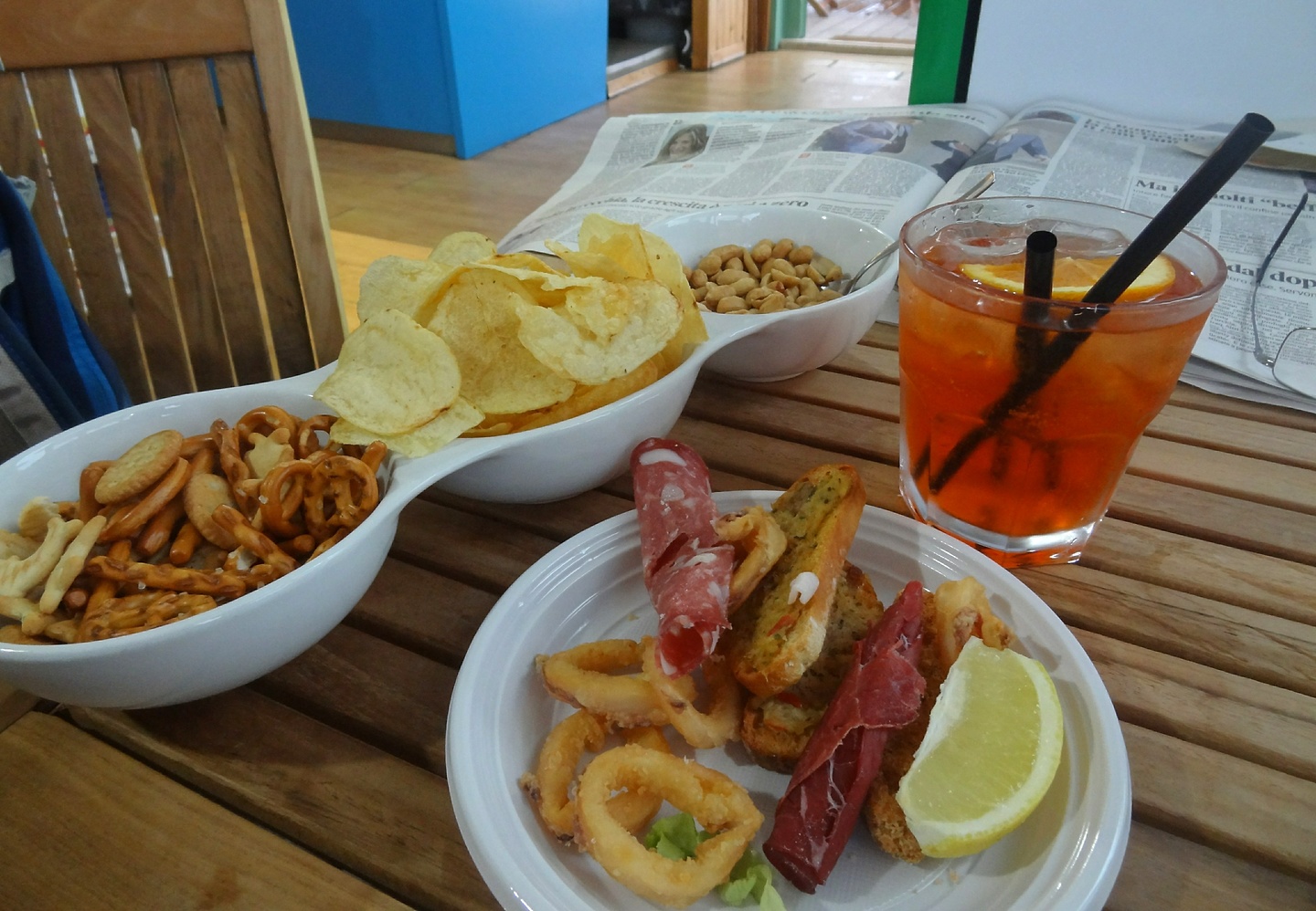 ... sitz ich schon lang in der Yachtbar in Marina del Campo und lass mir das Allyoucaneataperitivbuffet inklusive Spritz für nen Fünfer schmecken. Draussen regnets Hunde und Katzen, Übernachtungssituation ungelöst, aber irgendwas wird sich finden.