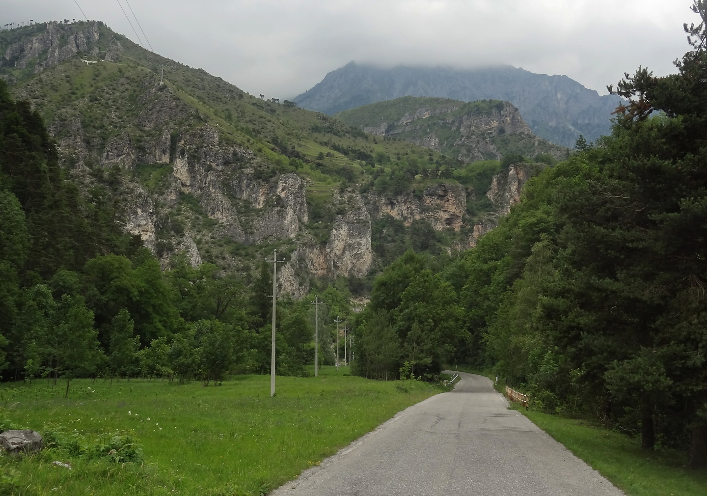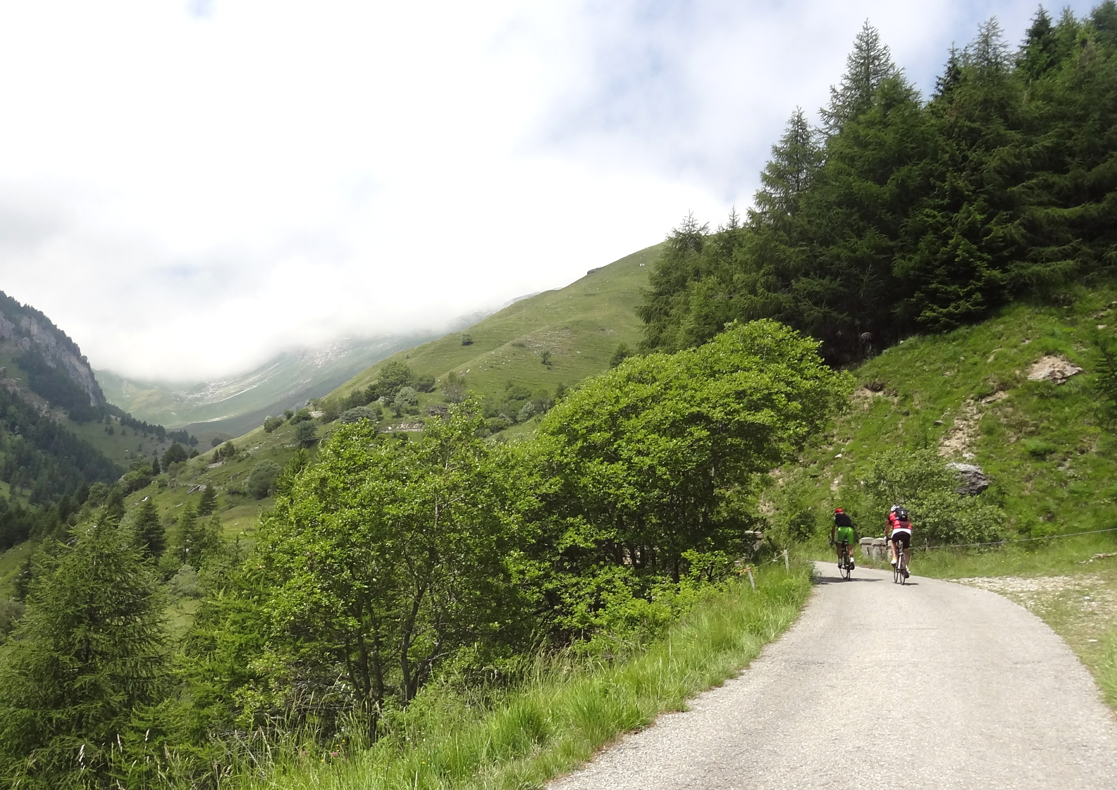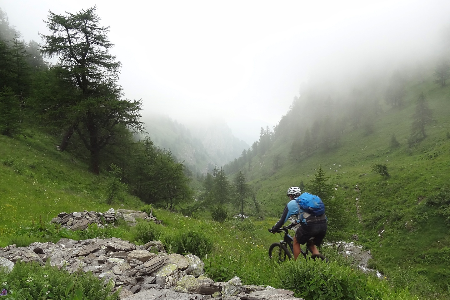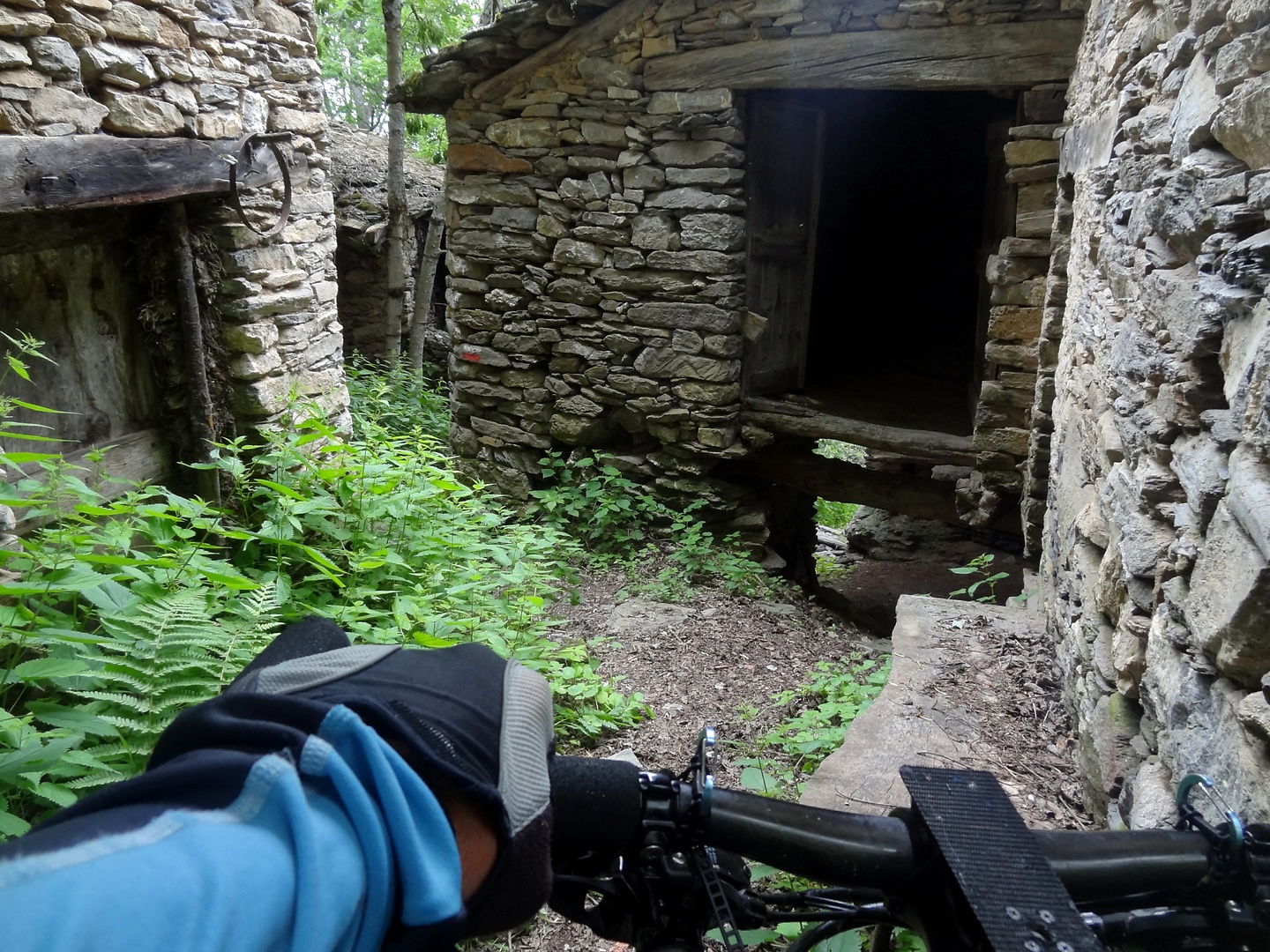 Später im tiefen Seealpenwald wirds wieder etwas leichter und ich rolle durch längst verlassene und etwas gruslige Minimaldörfer, hier "grange torre". Was um alles in der Welt hat die Menschen veranlasst, hier am steilen Hang mitten im dichten Wald fern von aller Welt ihre Häuslein zu bauen?! Das ist nun wirklich kein besonders einladender Platz.