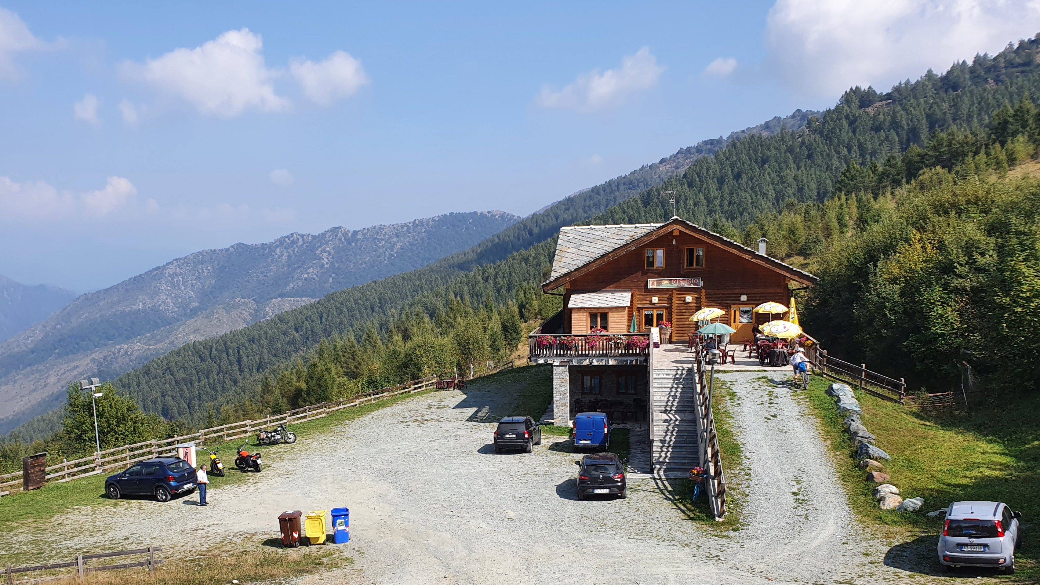 Kaum eintausend äußerst angenehme Höhenmeterchen bringen uns vom Fuß der Turiner Berge bei Lanzo di Torinese hinauf zum Colle del Lys. Nix besonders spektakuläres, das ist sowieso schwierig wenn man gerade aus dem Wallis kommt. Aber die Steigung war angenehm, Verkehr ist keiner, das Wetter bestens... und für die Abfahrt ins Susa-Tal finden wir nachher vielleicht ein paar fluffige Trails, die Karte ist voll davon. Hatten kurz auch den Passo Croce di Ferro als deutlich höhere Alternative im Visier. Den kenn ich allerdings schon vom Abruzzix in Süd-Nord Richtung, andersrum ist's vermutlich ne ausgedehnte Bikeschlepperei über wenigstens 800 Höhenmeter. Muss jetzt auch nicht sein, dann lieber was neues.