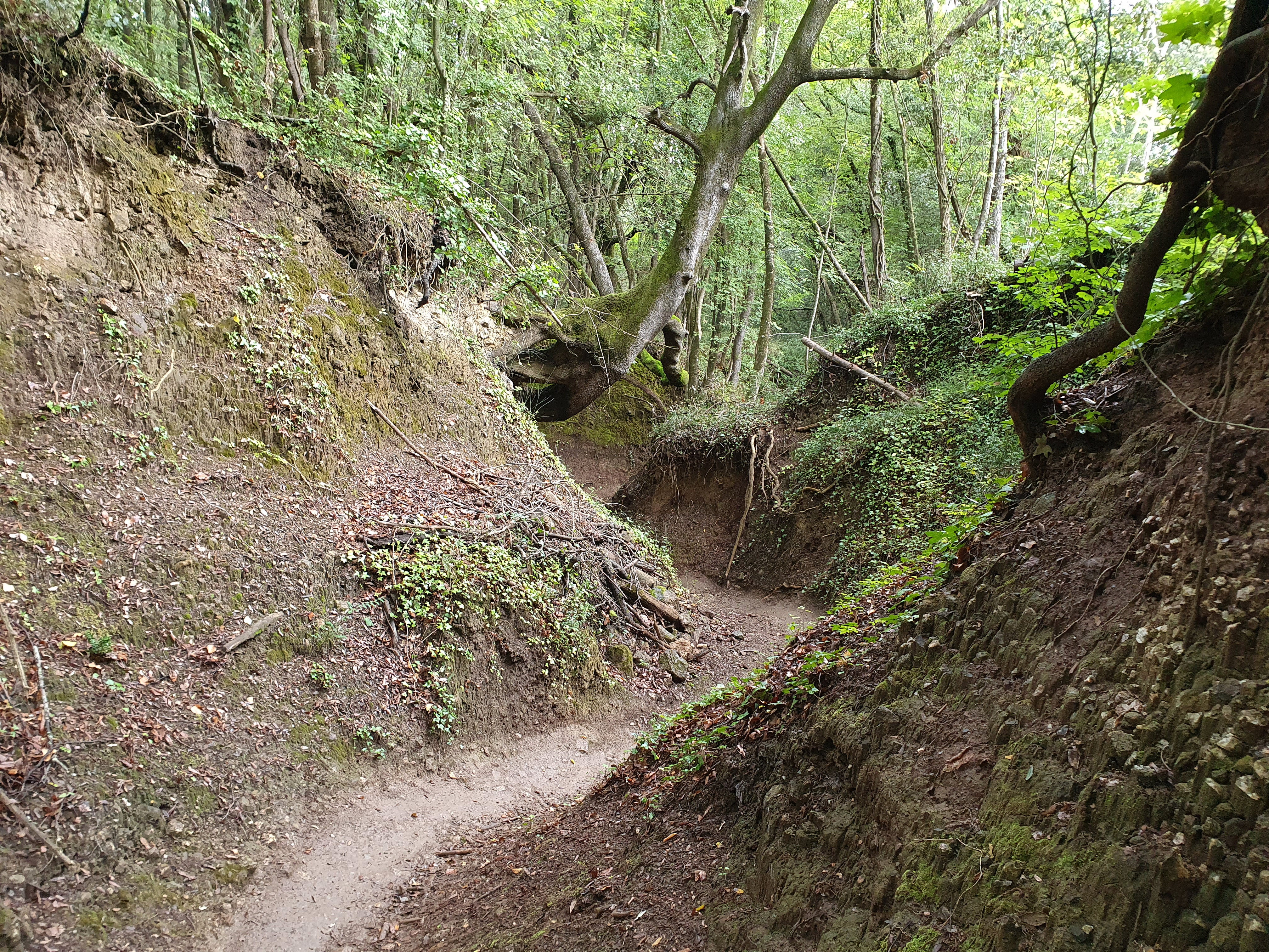Heute ist das Wetter windig und wolkig, aber immerhin trocken. Dann wurstl ich mich doch mal den durchwachsenen Hügel von Massa hinab...