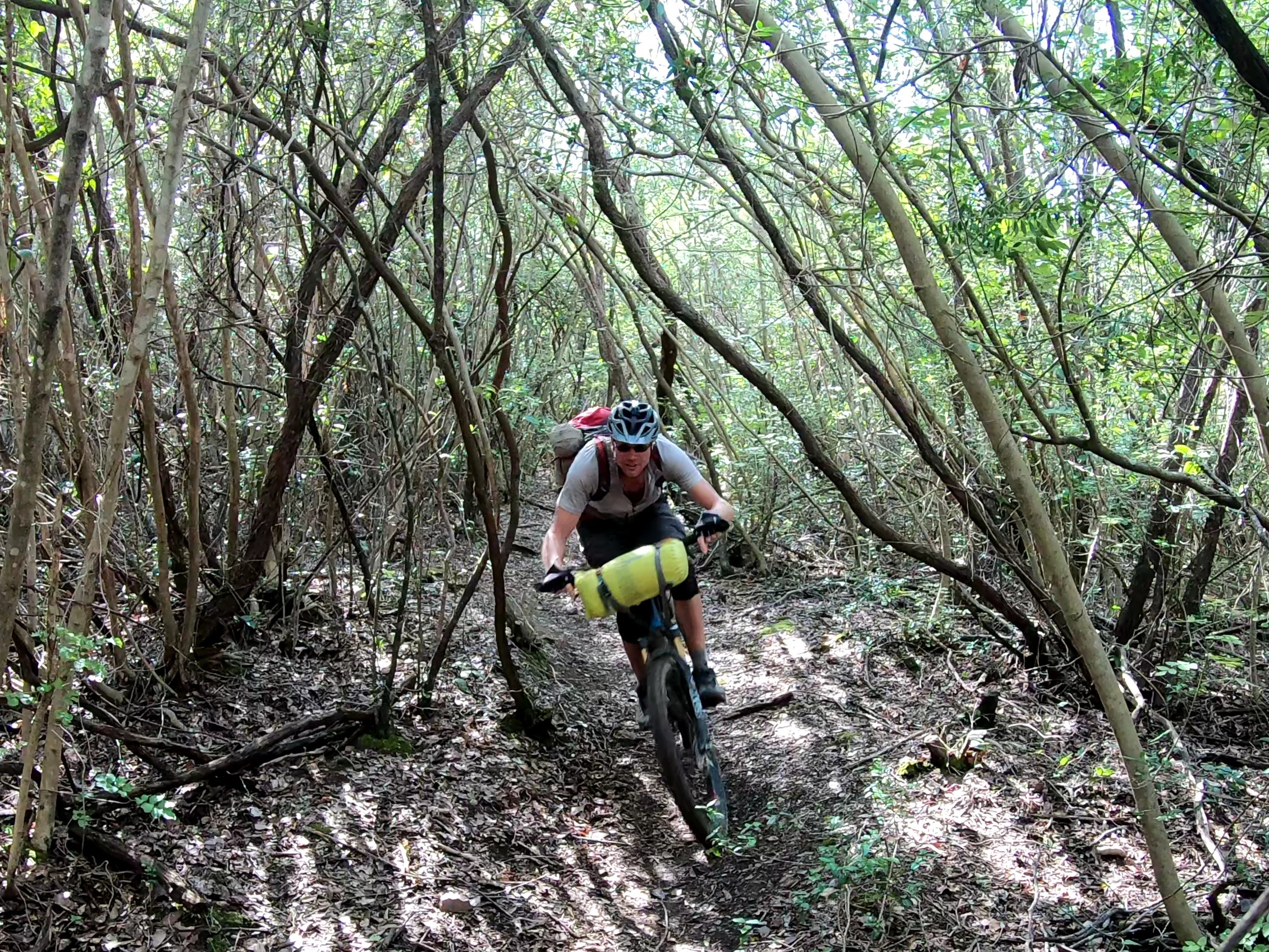 Vom Gipfelhügel mach ich gar kein Foto, denn es gibt ihn visuell nicht. Der "Montioni Downhill" Singletrack auf der anderen Seite hinab ins Landesinnere ist trotzdem recht unterhaltsam und für die marginal wenigen Tiefenmeter doch erstaunlich lang.