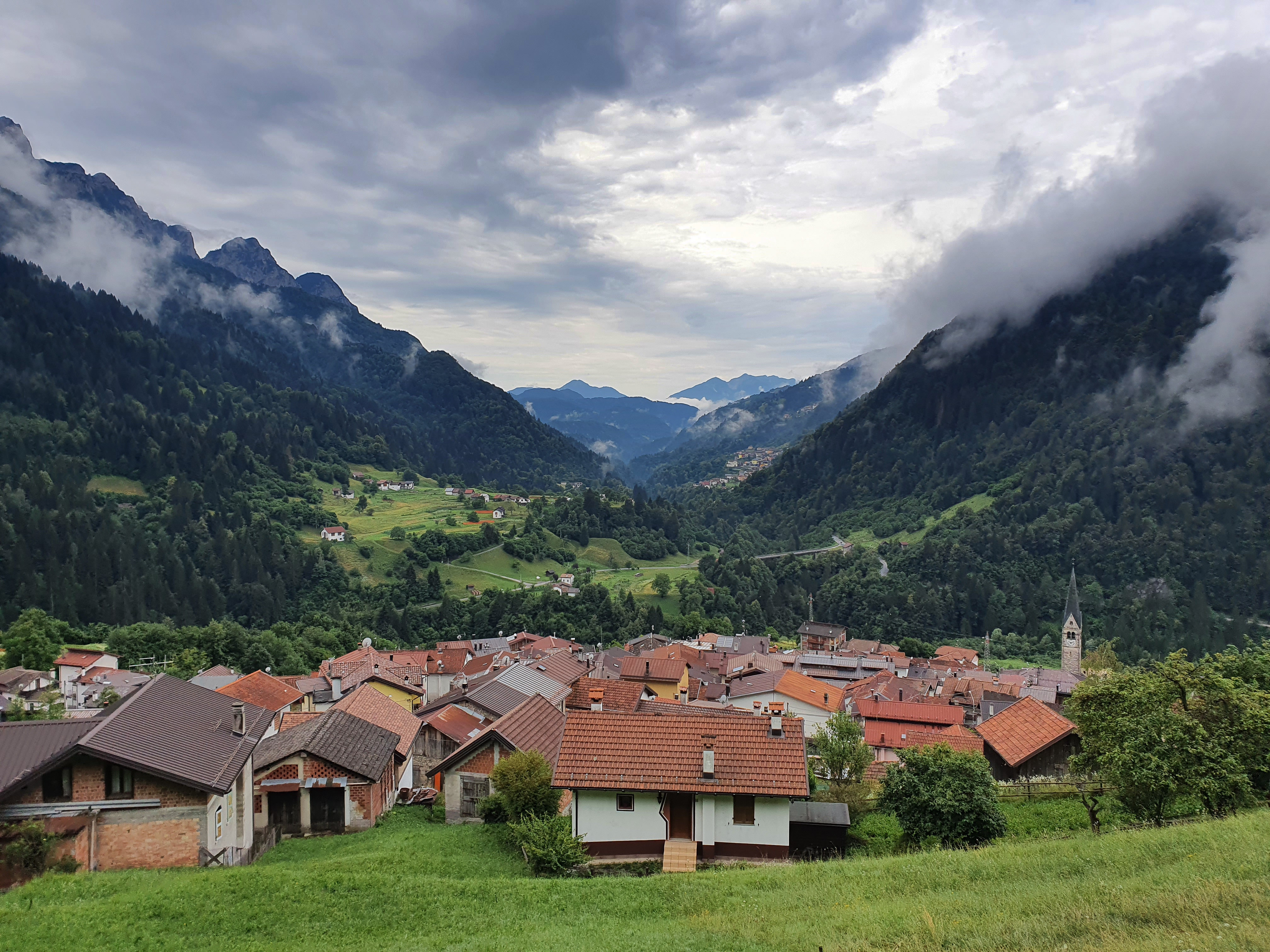 Ah, jetzt fährt man schon mit dem Auto den Berg hoch. Oder zumindest scheint eins oben auf dem Berg zu stehen15.07. 11:00 Salino bei Paularo, 680m