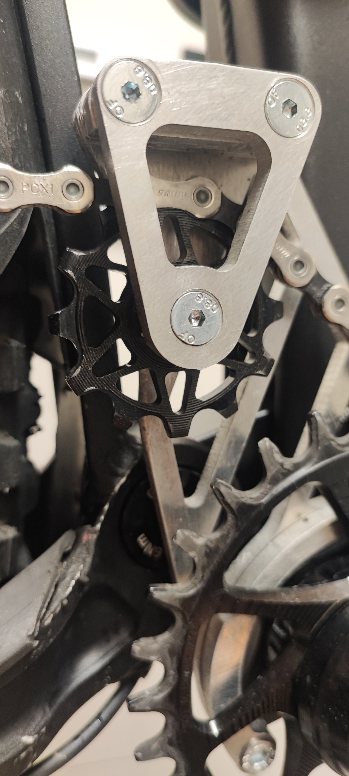 Der Schräglauf der Kette wird auch noch verschärft = auch mehr Geräusche