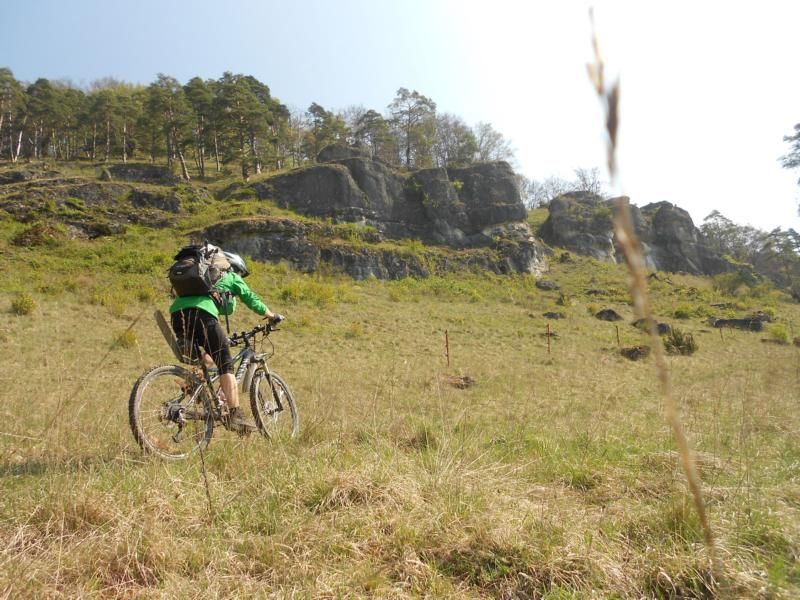 Hier ist das Befahren der schmalen Pfade mit Bikes besonders problematisch, da durch Ausweichverkehr hier die wertvolle, nur sehr dünne Vegetationsschicht beschädigt wird und es am Hang dann zu Ausspülungen kommt. Dass dies auch faktisch geschieht, ist aus dem Foto im Anhang zu ersehen, das im Herbst am Zimmerner Hang bei Pappenheim aufgenommen wurde. Deutlich zu sehen die Rinne parallel zum Pfad (Panoramaweg), die dadurch entstanden ist, dass die