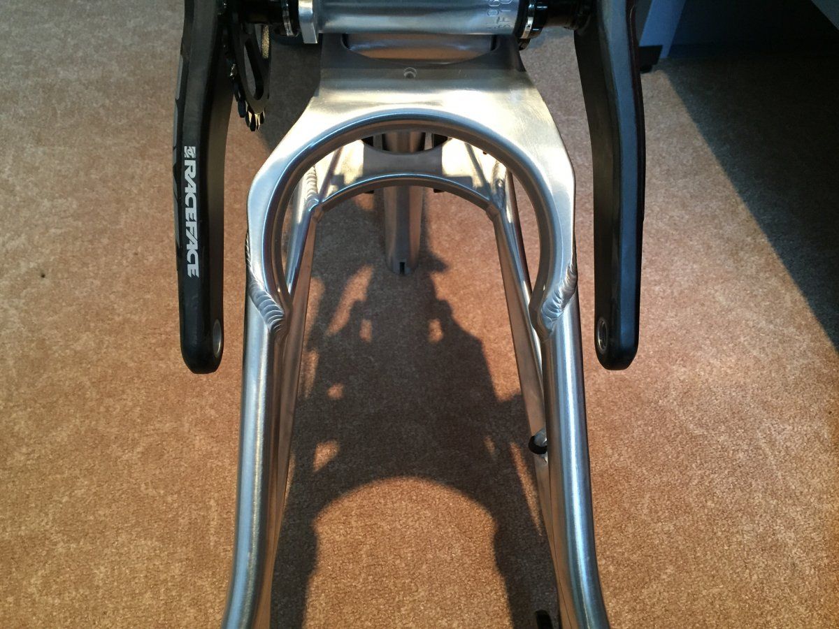 Kurbel eingebaut und vermessen (Q-Faktor 195mm, zum Glück mit reichlich Luft zu den Kettenstreben)