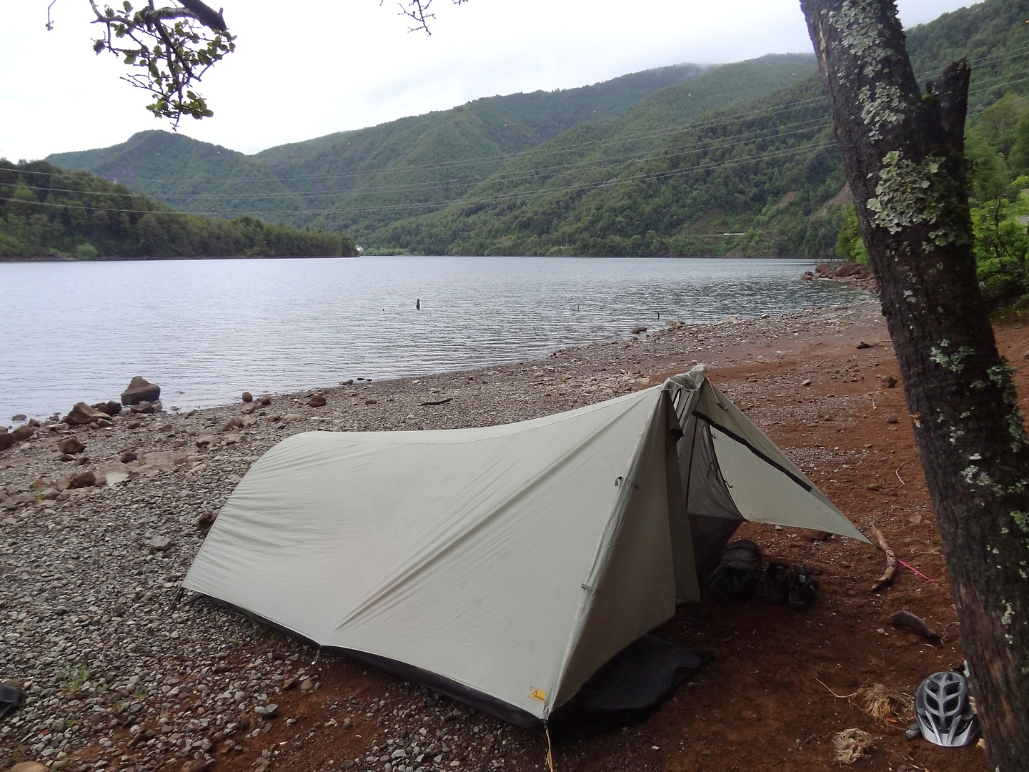 Camp am Stausee bei Ralco. Der Plan: Ein Weg namens "monkey puzzle trail" soll die offroadige Verbindung nach Villarica schaffen. Zwei bis vier Tage ohne Laden, so ganz blick ichs noch nicht, die Angaben widersprechen sich. Haben jedenfalls mal Futter für drei Tage eingepackt, das muss reichen. Oder auch nicht... wie werden sehen.