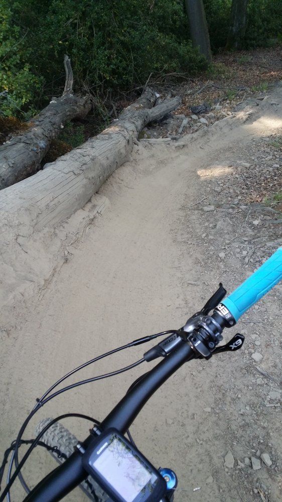 Auf dem Bild wo ich den Daumen hoch halte sieht man schon wie der Hinterreifen die Luft verliert....Auflagefläche wie beim Fatbikewaren heute in einer 5er Gruppe im Wiedtal. Klasse Runde mit jeder Menge Flowtrails - einige Spitzkehren waren auch dabei, rauf wie runter. Hat mir richtig gut gefallen - der Flow-Anteil hat gepasst.