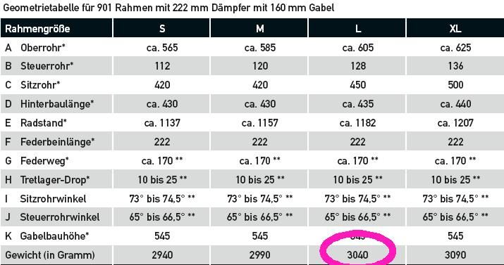 ...Rahmengewicht ....3950 g inkl. Dämpfer und so ca. 1,5 m Schaltzugaußenhülle und X12 Achse...