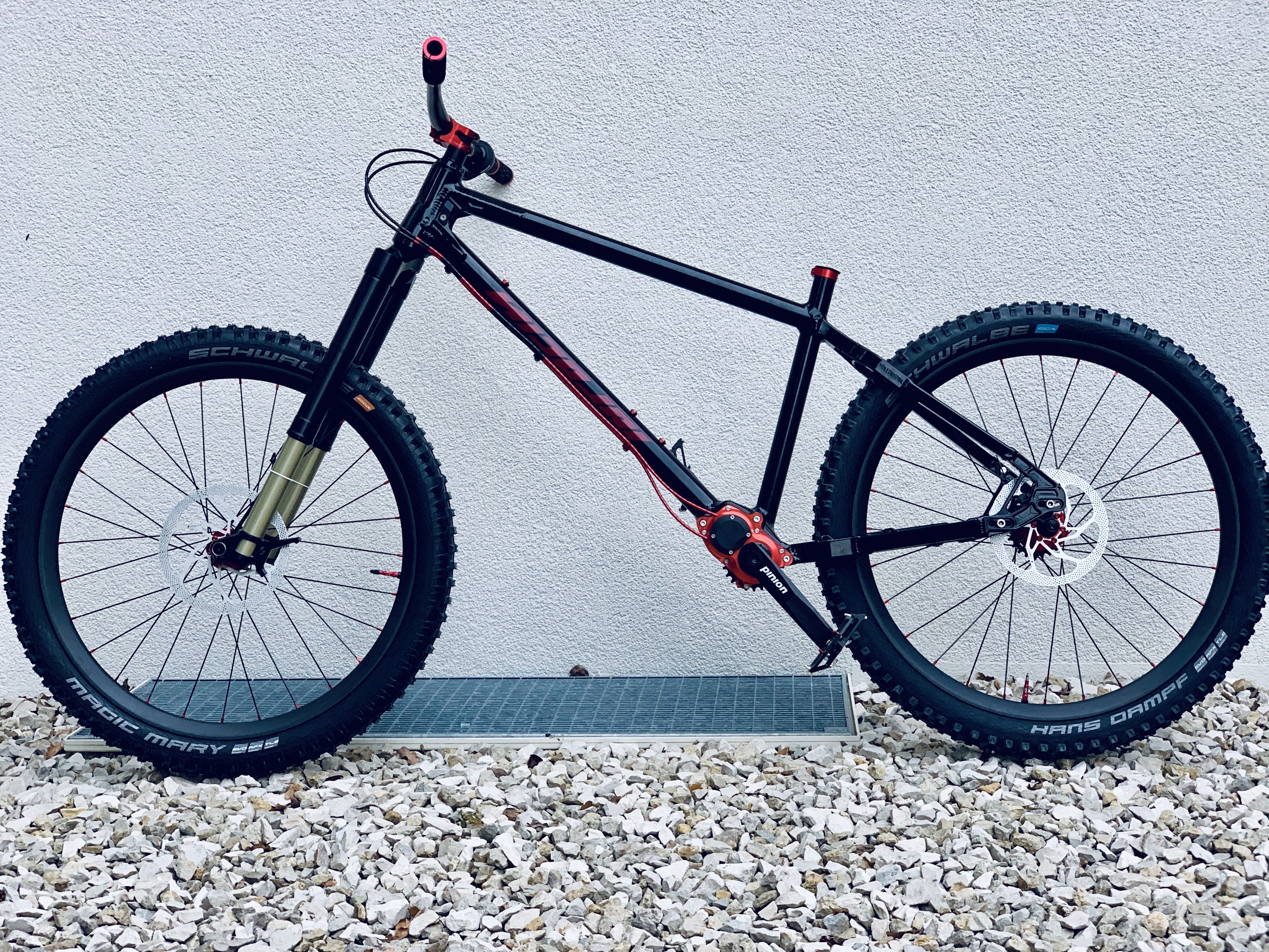 Den Vorbau hab ich hier aus dem bikemarkt.Vorbau selbst eloxieren lassen und dann von Cornelius laser gravieren lassen?Schaut alles gut aus, bin auf die Laufräder gespannt.