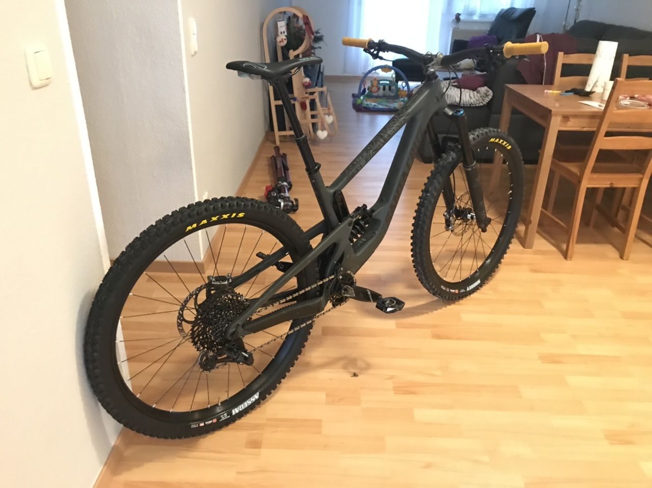 Bin 93 nackt und fahre die 550er Feder. Bisher noch keinen spürbaren Bottom Out gehabt und ich lande genau bei 30% SAG. Bikparkbesuch steht noch aus. 600 wird evtl. etwas hart sein.Bei 92 kg aktuell (-4,5kg seit November) werde ich mit Klamotten und Ausrüstung dann wohl bei 96-97 kg landen weshalb ich jetzt eine 600er Feder geordert habe. Wird nicht ganz 30% Sag ergeben aber ich denke in der hohen Position sollte das mit der niedrigeren Progression schon seinen gang gehen, was mein ihr?