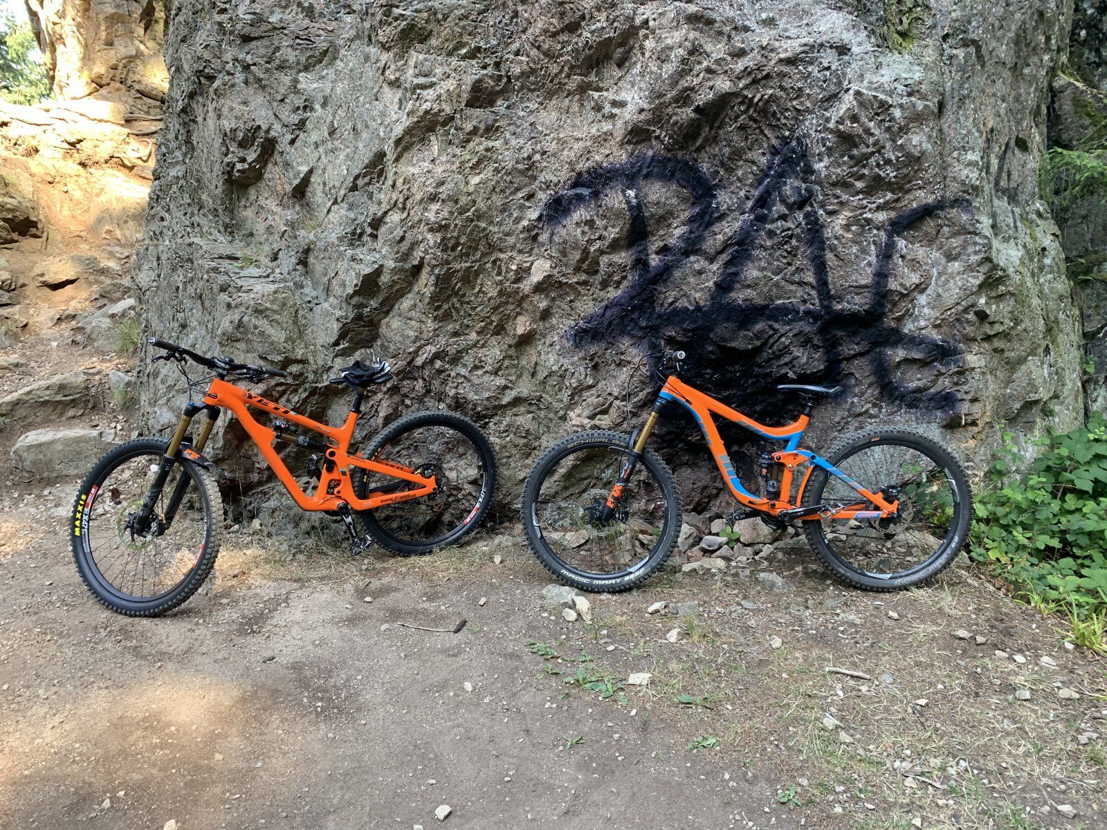 Mhm ich würde trotz den oben genannten Beidpielen sagen, dass das Bike zu den leiseren gehört. Ich habe zusätzlich noch ein Wenig Slapper Tape auf die vorhanden Schützer geklebt und oben auf noch das Noppenmuster. Also insgesamt fast drei Lageb drauf. Das Bike wird lediglich wenn ich wirklich ballern geh ein bisschen lauter. Mit ballern meine ich in Finale mal ordentlich stehen lassen oder die Borderline in Freiburg oder auch mal den ein oder anderen Bikepark. Wobei die sich ja in den letzten Jahren ein bisschen zu Waldautobahnen gewandelt haben.