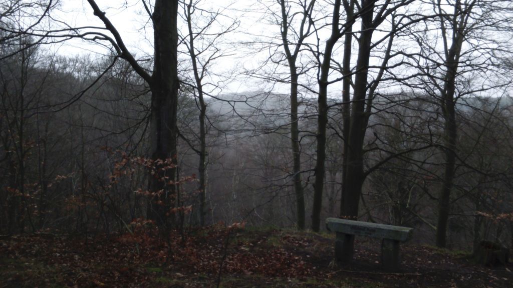 Schnappschuß vom Ende des Anstieges, wo man bei einsetzendem Schnee nach links zum Thüringer Blick direkt auf die Rücktour gehen kann, oder besser aber doch auf dem rechten Weg bleibt, die vier Kicker nimmt und irgendwie Richtung Kaffee-Nachkippen fährt:
