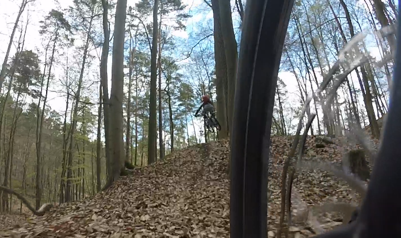 Der Gotti/Phonka-Uphill; als ich rückzu (also downhill) nach dem Abziehen an der Kante oben wieder landete gabs da son fieses fieses Geräusch, als das Hinterrad statt zu rollen, lieber an der Längswurzel lang surfte. Fühlte sich danach auch komisch an. Sah dann auch seltsam aus: