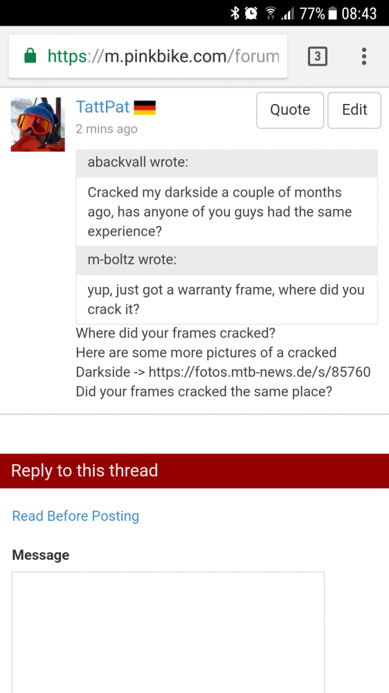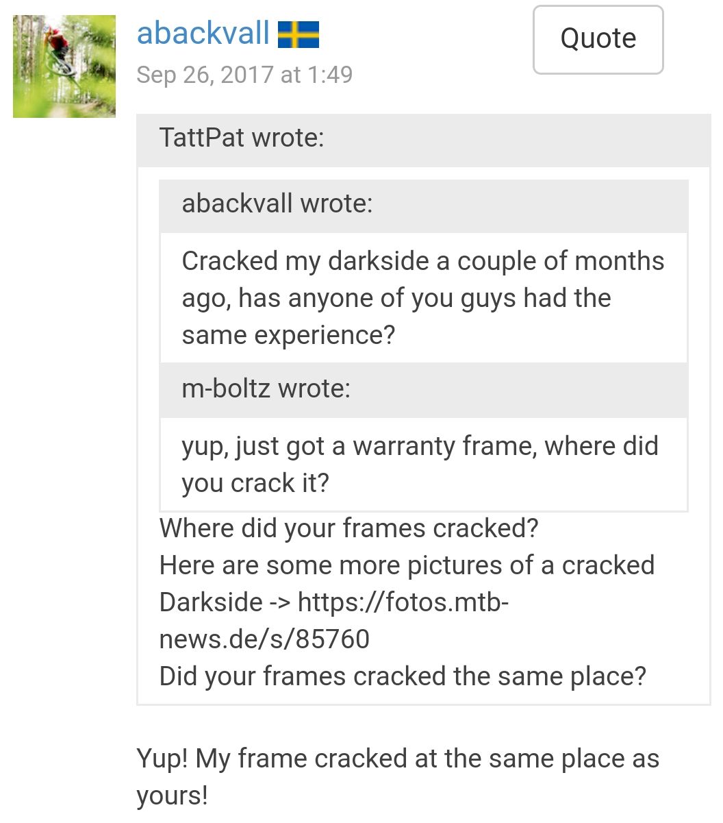 In meinem Post sind "zwei" Fälle geschildert. Beim ersteren ist der Rahmen an der gleichen Stelle gebrochen wie bei den anderen beiden Jungs hier. ;)