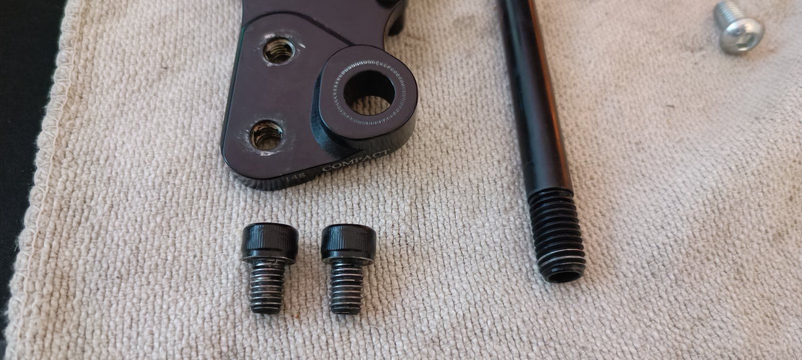 Zu Hause hab ich mir das alles mal genauer angeschaut und finde die Gewindeeinsätze der Dropouts haben recht viel Spiel in Verbindung mit Schrauben. Mit den mitgelieferten Schrauben am meisten (die sehen auch nicht mehr schön am Gewinde aus). Mit anderen passenden neuen Schrauben ist das "Spiel" im Gewinde weniger, aber dennoch ist Spiel (Schraube wackelt im Gewinde).