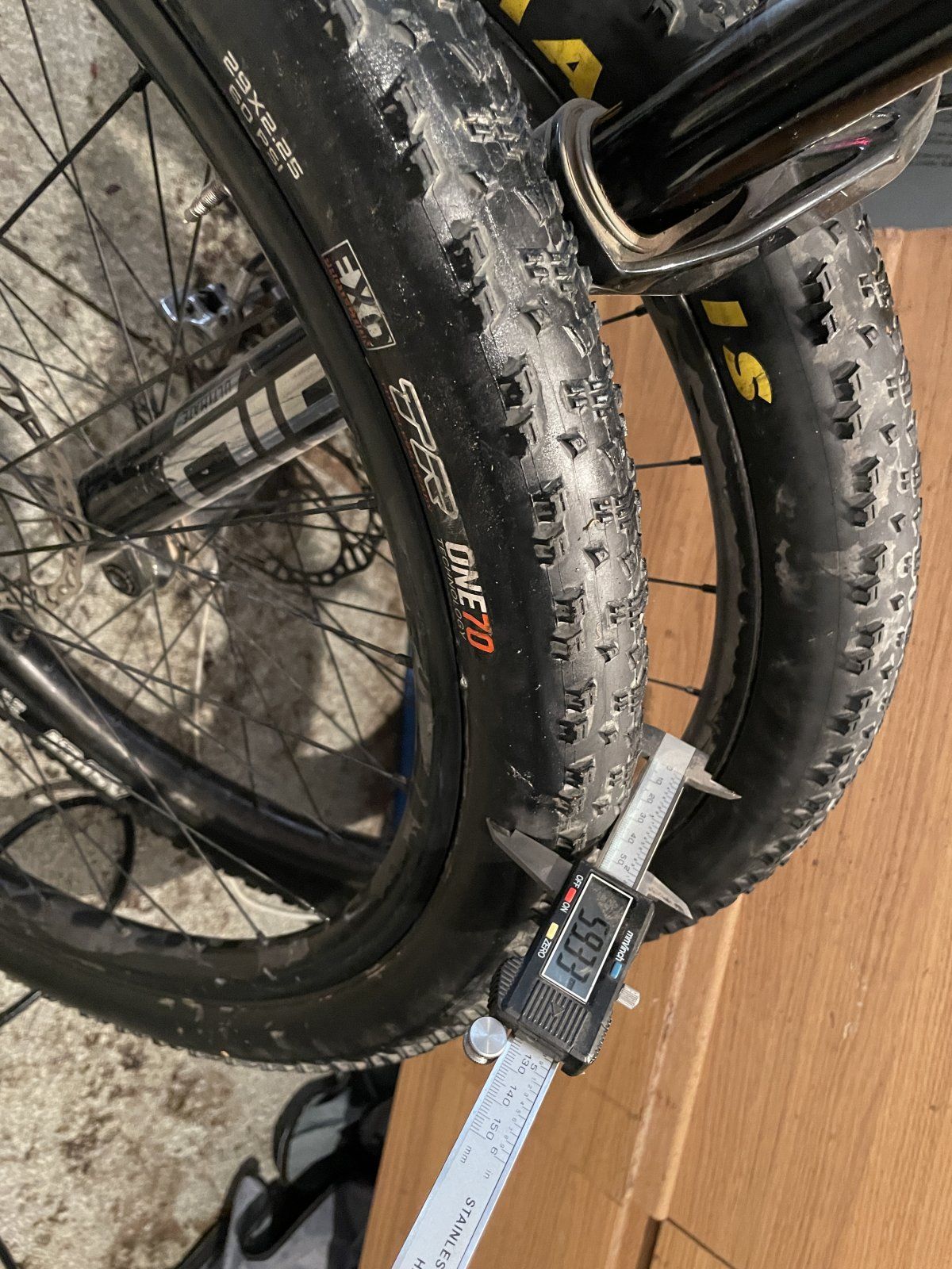 Ob das halten kann, wird vermutlich die interessanteste Frage. Der TB 2,35 liegt bei 660g aufwärts und der Rush hat mehr Stollen. Da es kein Feen-Leicht-Zaubergummi gibt, ist vermutlich irgendwo weniger Material. Hinten ist mir am Fully die Karkasse an der Seite nicht so wichtig, mal schauen