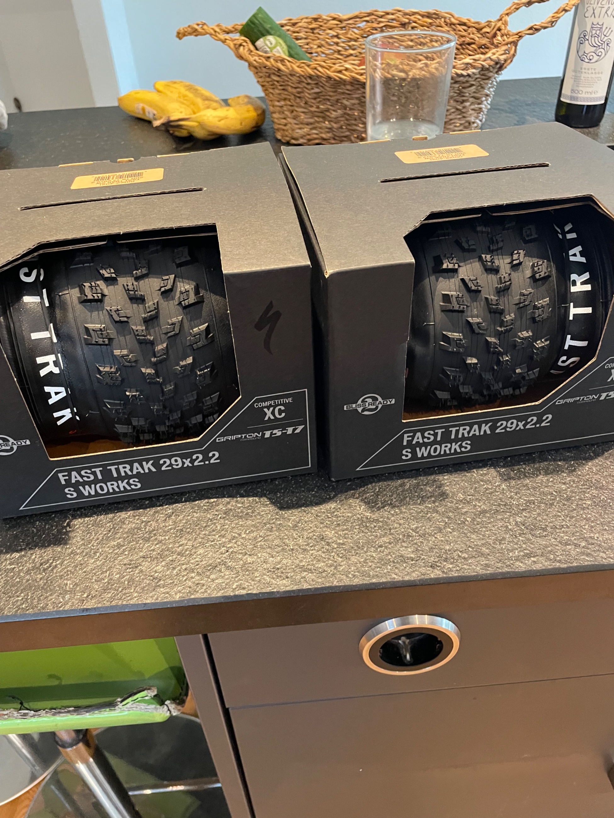 Ich fahr die 2 Stück für 50 € auch. Bei 2 Bar auf 28 mm Felge 55 mm wie versprochen, dauert aber ein bis 2 Tage. Und vorher mit 4 Bar auf die Duke Felge (mit Schlauch) gezogen, läuft der Fast Trak S-Works perfekt rund. Besser als die letzten Schwalbes und Contis die ich hatte.