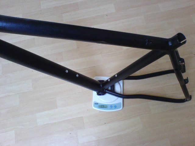 so, mein herzstück(ghost htx scandium team jg.2003, sisp-edition, v-brake only und schwarz eloxiert) ist endlich da, die belohnung: 1305g(inkl. 4*alu-ösen) in grösse 20,5"