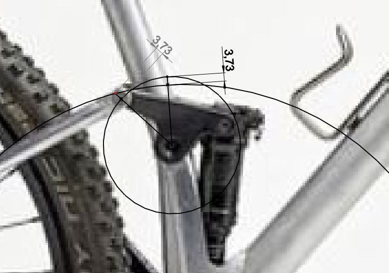 Ich behaupte, das bei unserer Kinematik die Auslenkung, welche am oberen Ende der Sitzstrebe stattfindet am geringsten von allen ist. das ist auch einer der Gründe , warum Dämferaufhängung und Schwingenlager in einem Punkt zusammenfallen. Verformen tut sich die Sitzstrebe eher auf ganzer Länge und nicht an einer Stelle. Das ist für die Kinematik, im Gegensatz zum Horstlink, unerheblich.