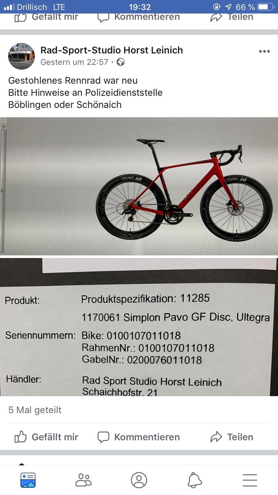 Bike ist wieder da!!!! Der Schwarm hat funktioniert!